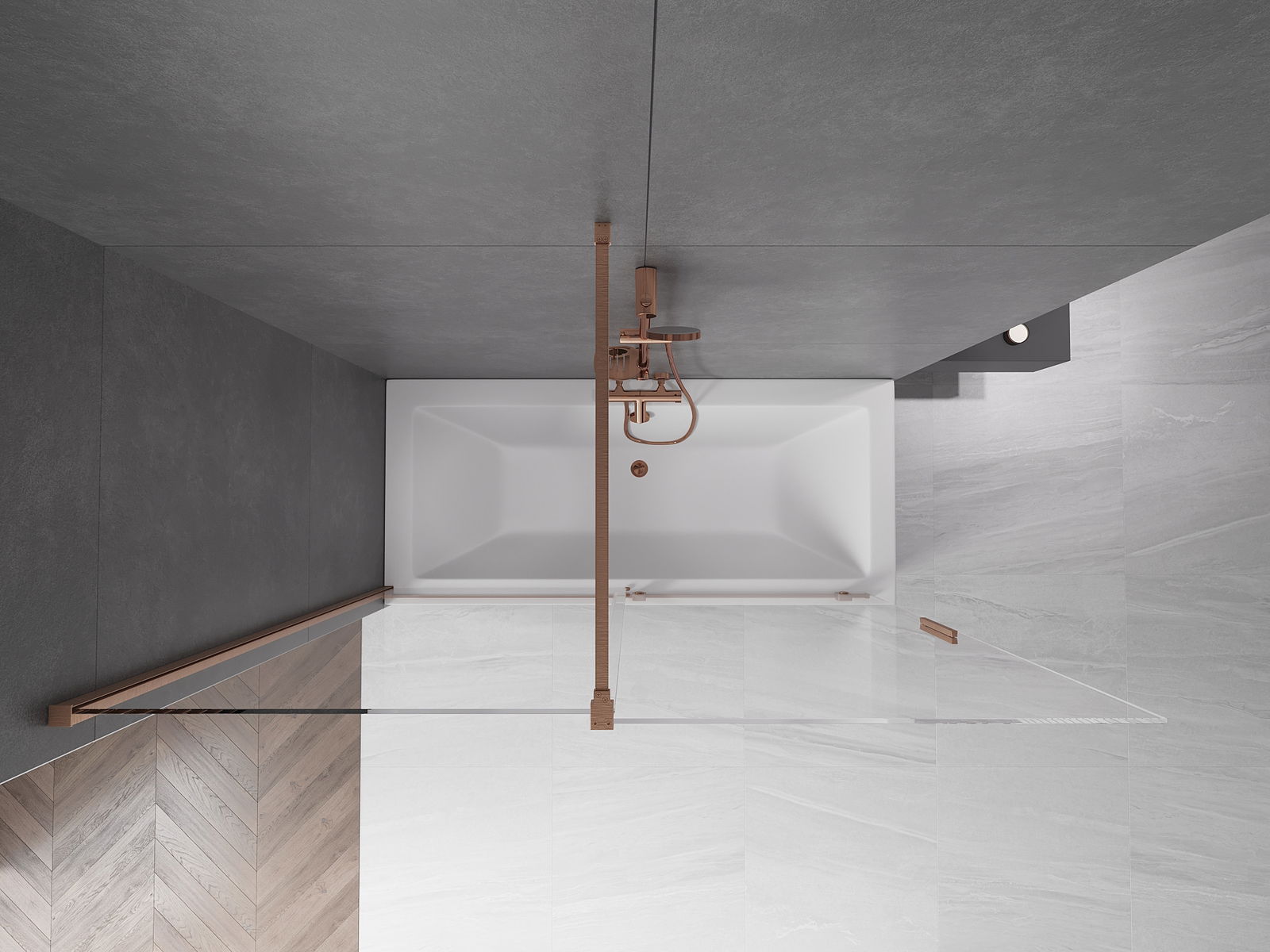 Mexen Velar dviejų dalių stumdomas vonios ekranas 170 x 150 cm, skaidrus, šlifuotas varis - 896-170-000-01-65