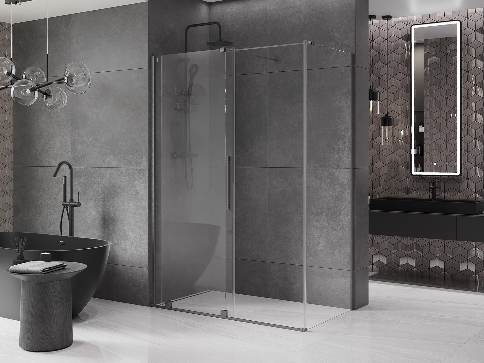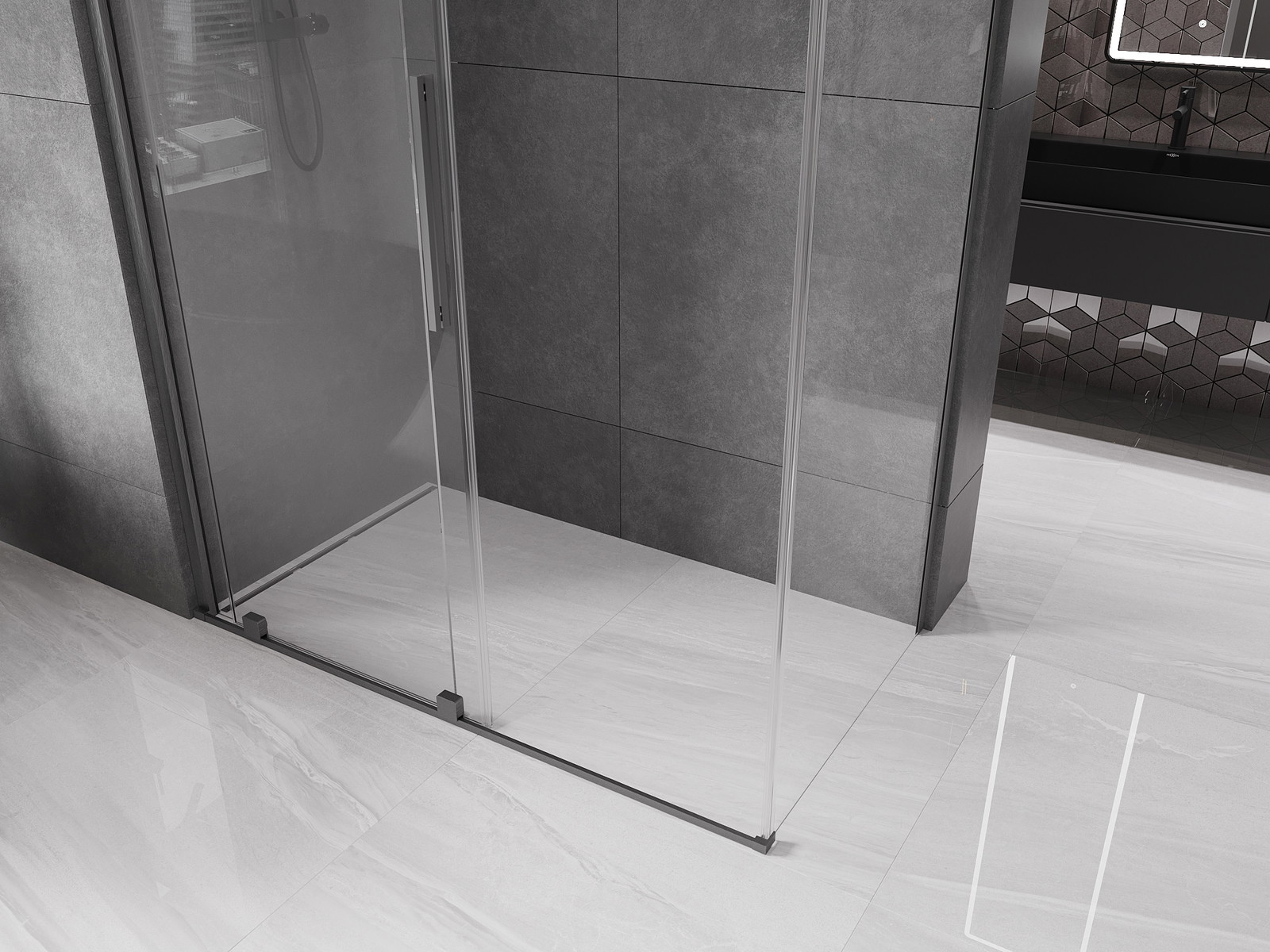 Mexen Velar 160 x 90 cm stumdoma dušo kabina, permatoma, grafito pilkas šepečiu - 871-160-090-01-66