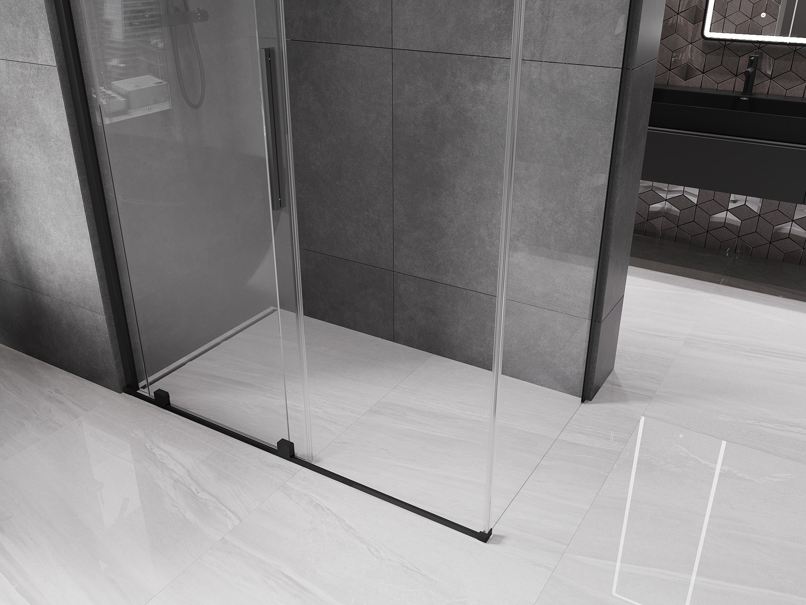 Mexen Velar stumdomoji dušo kabina 150 x 90 cm, permatomas, juoda - 871-150-090-01-70