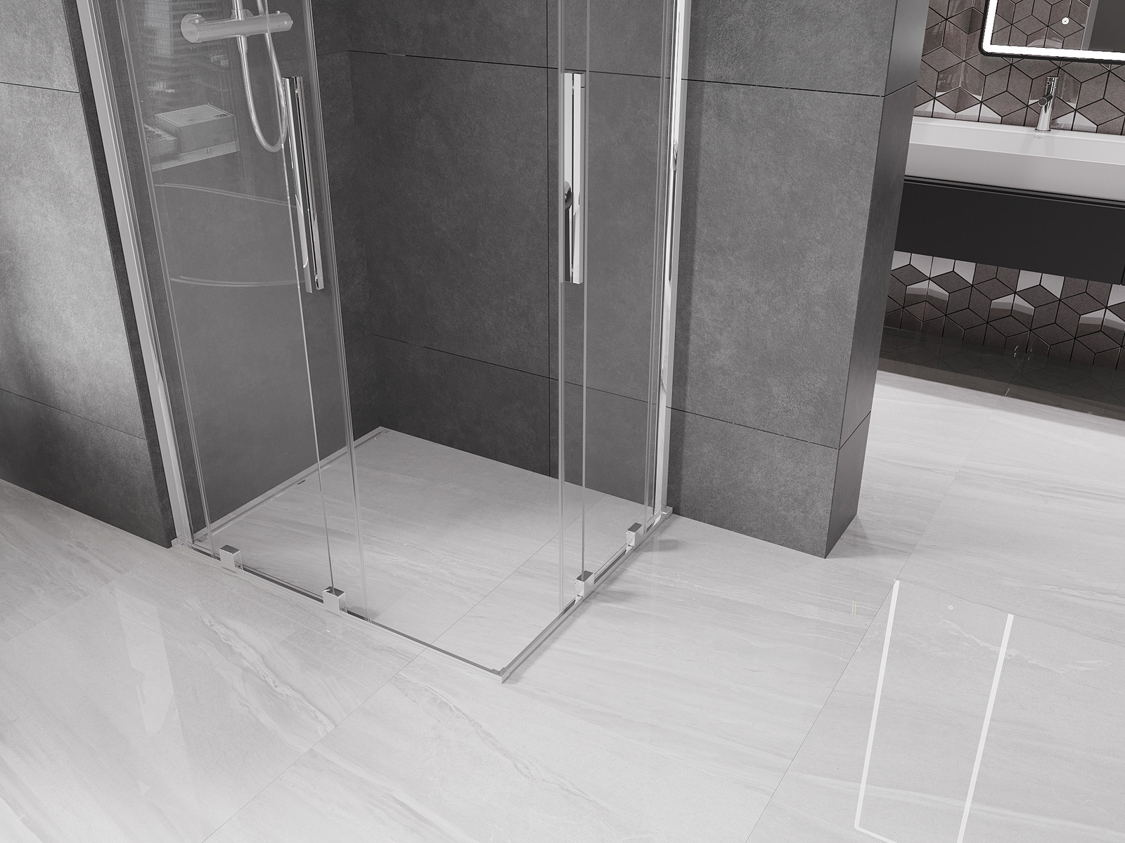 Produktą, atsižvelgiant į poreikius, galima sumontuoti tiek ant dušo padėklo, tiek tiesiogiai ant grindų. Universalus montavimo būdas leidžia pritaikyti produktą įvairių tipų vonios kambariams ir erdvės konfigūracijoms.