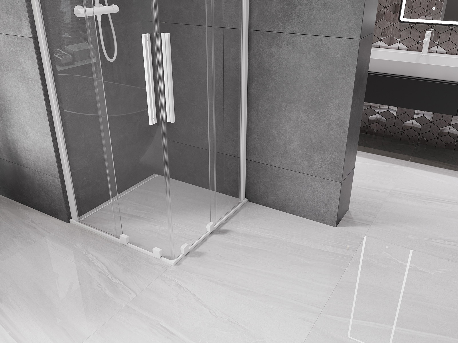 Mexen Velar Dviguba dušo kabina stumdoma 90 x 90 cm, permatoma, balta - 871-090-090-02-20