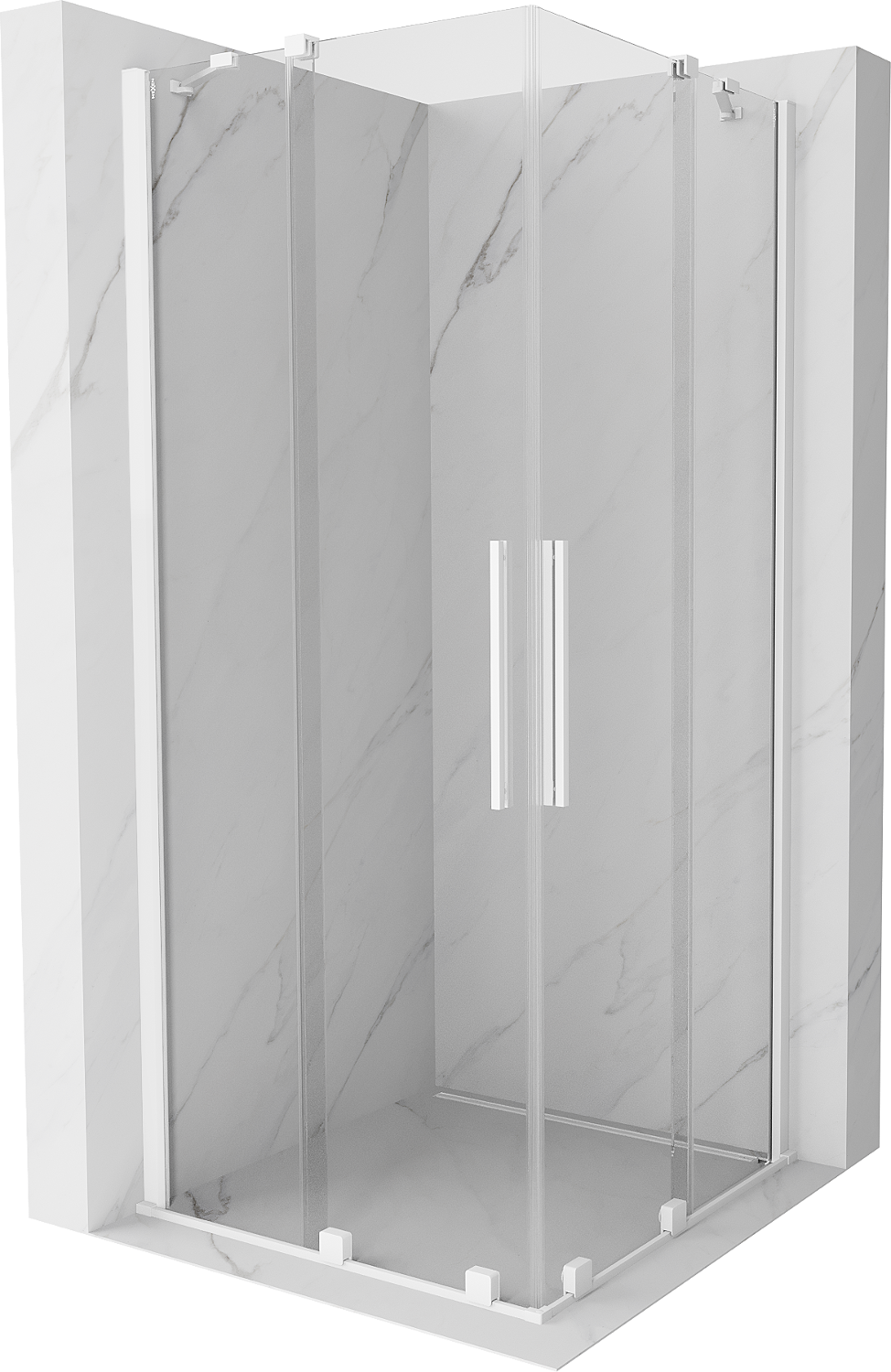 Mexen Velar Dviguba dušo kabina su slankiosiomis durimis 100 x 100 cm, skaidri, balta - 871-100-100-02-20