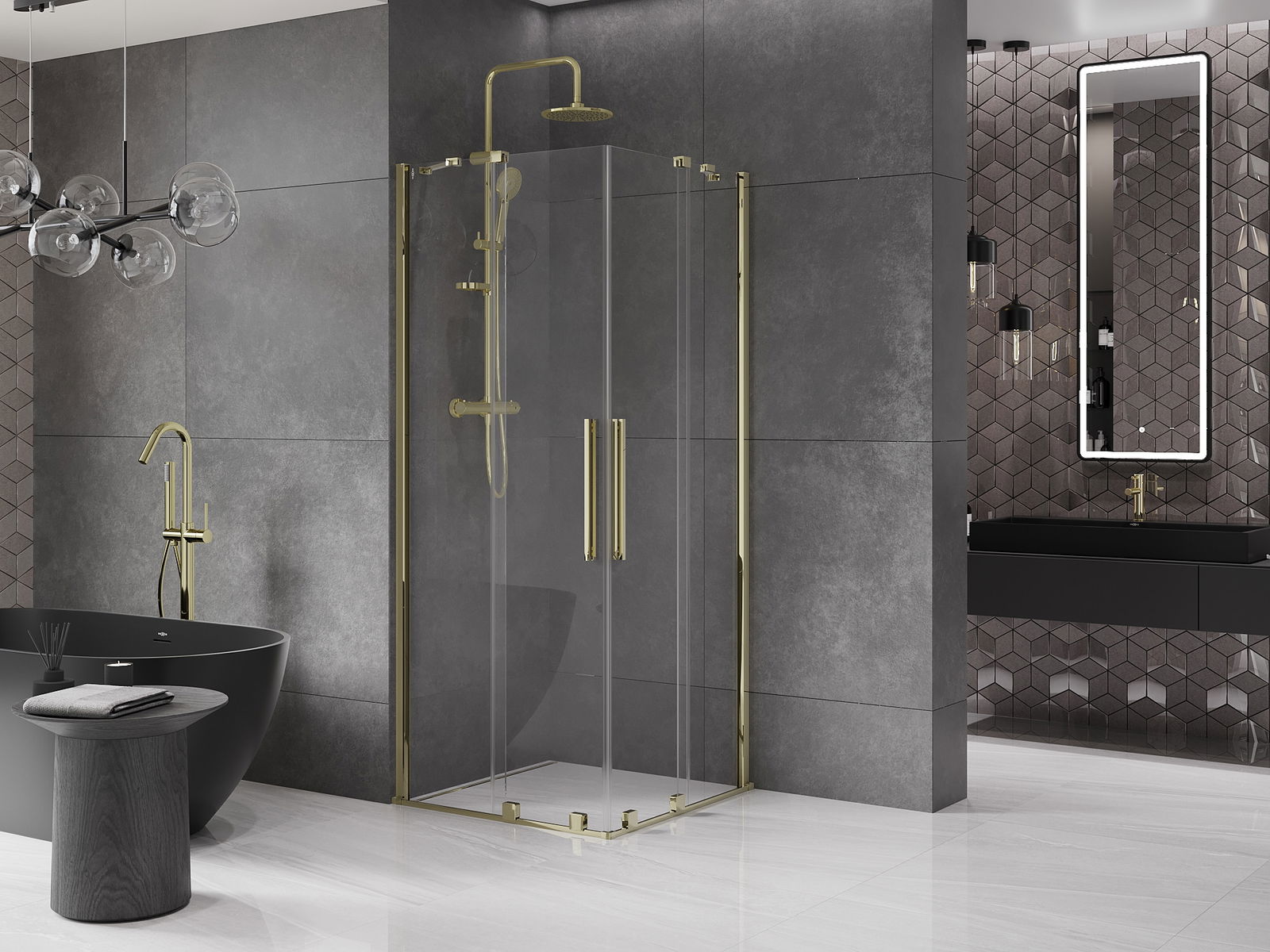 Mexen Velar Duo stumdoma dušo kabina 80 x 80 cm, permatomas, auksinė - 871-080-080-02-50