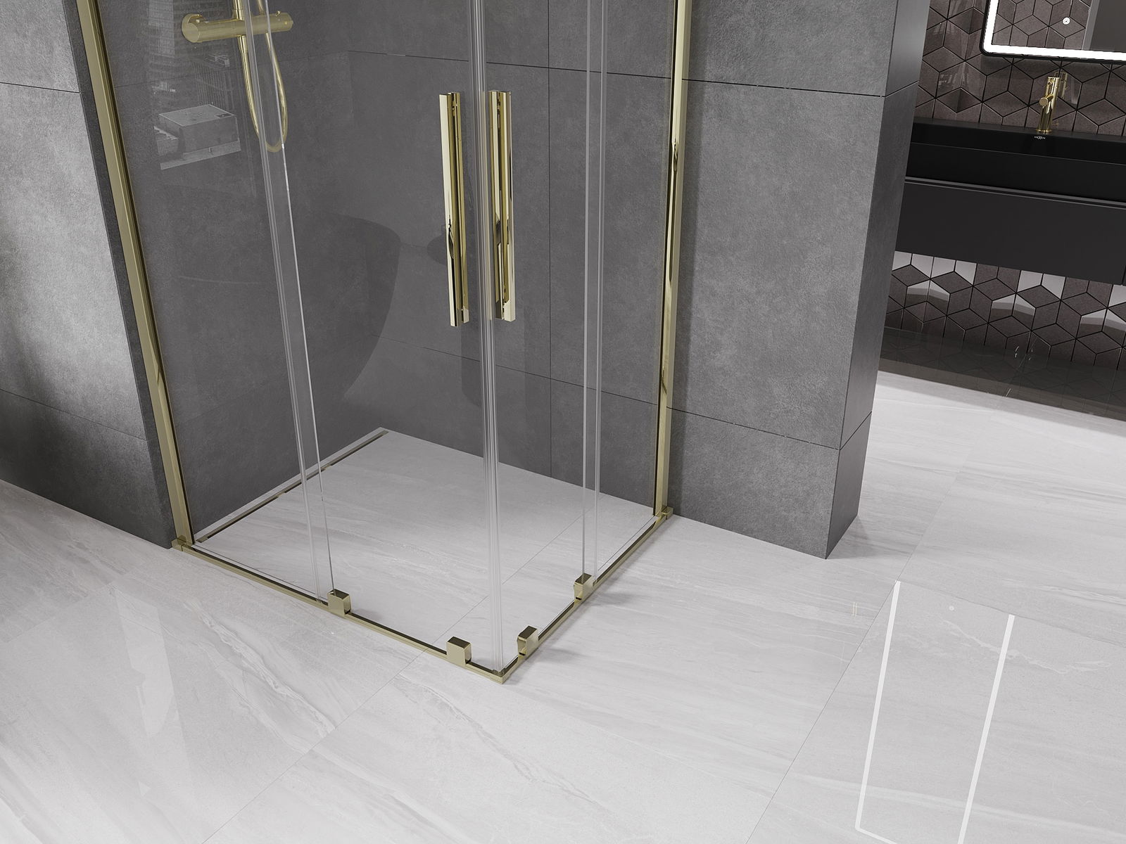 Mexen Velar Duo stumdomoji dušo kabina 100 x 90 cm, permatoma, aukso spalvos - 871-100-090-02-50