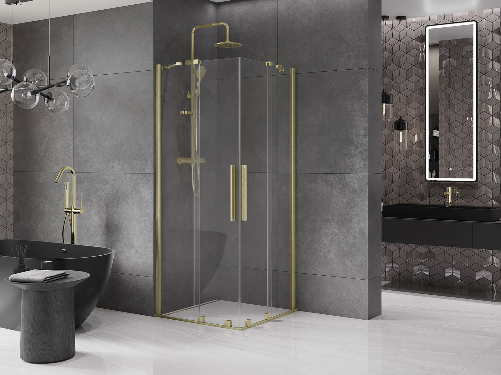 Mexen Velar Duo stumdoma dušo kabina 90 x 90 cm, skaidri, auksinė šepečiuota - 871-090-090-02-55