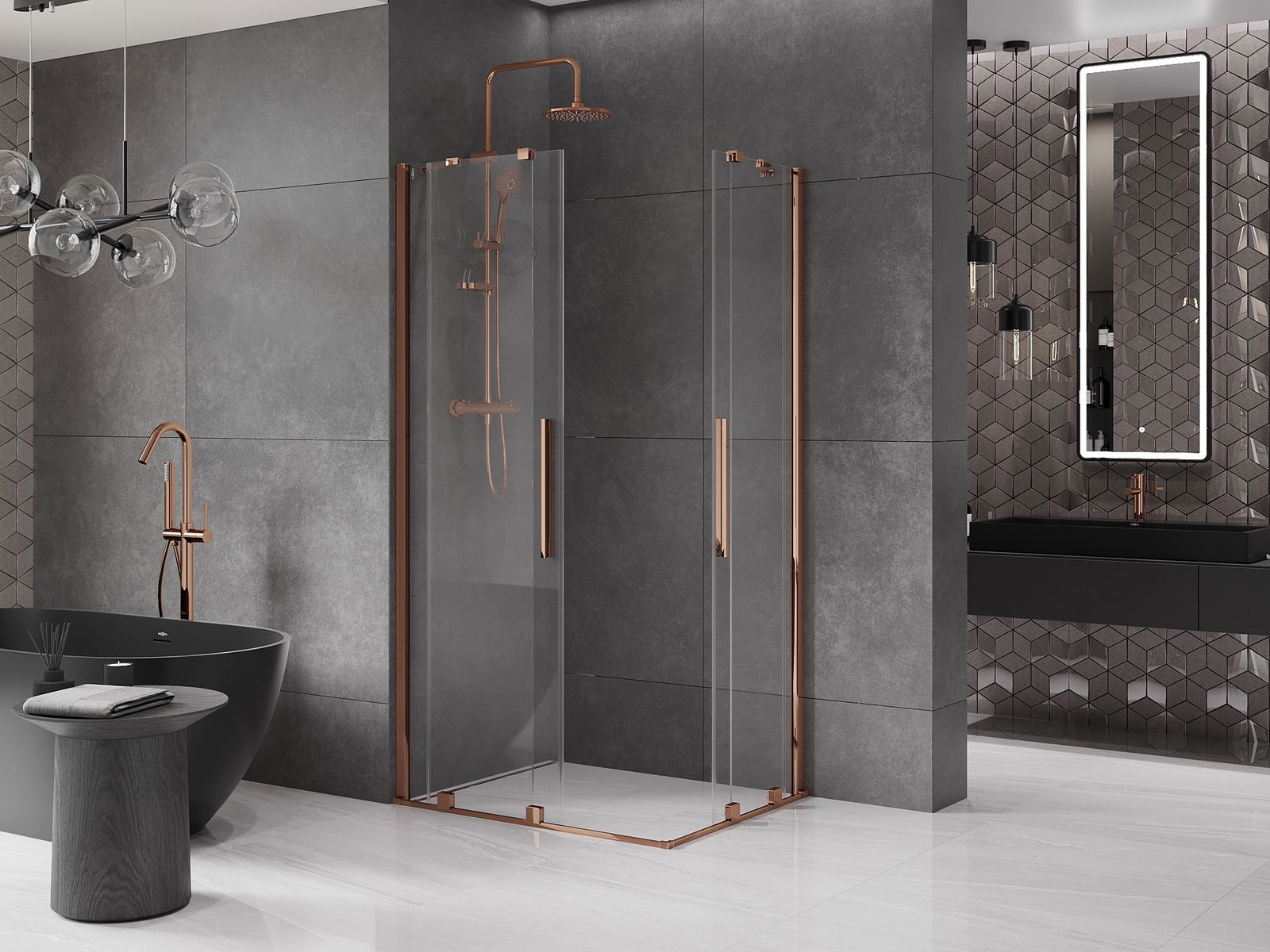 Mexen Velar Duo stumdomoji dušo kabina 100 x 90 cm, skaidri, rožinis auksas - 871-100-090-02-60