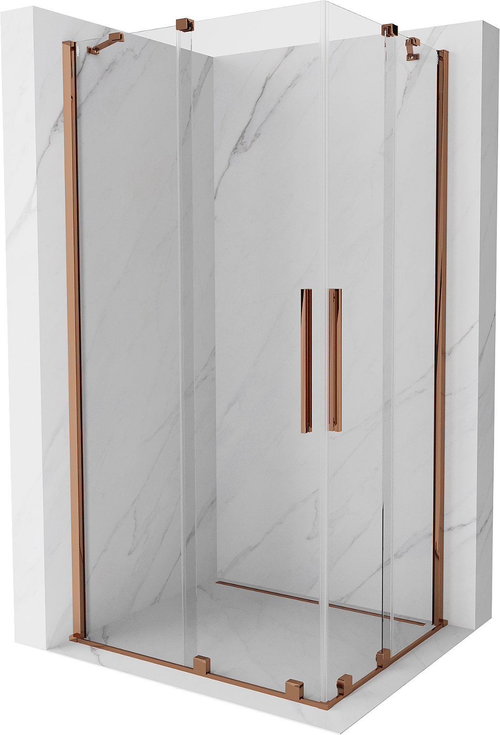 Mexen Velar Dviguba slankiojanti dušo kabina 100 x 90 cm, permatoma, rožinis auksas - 871-100-090-02-60