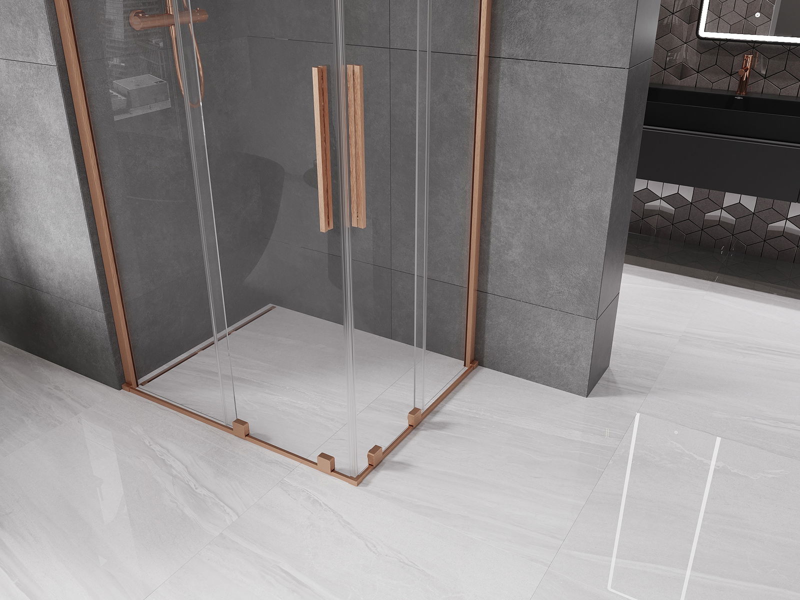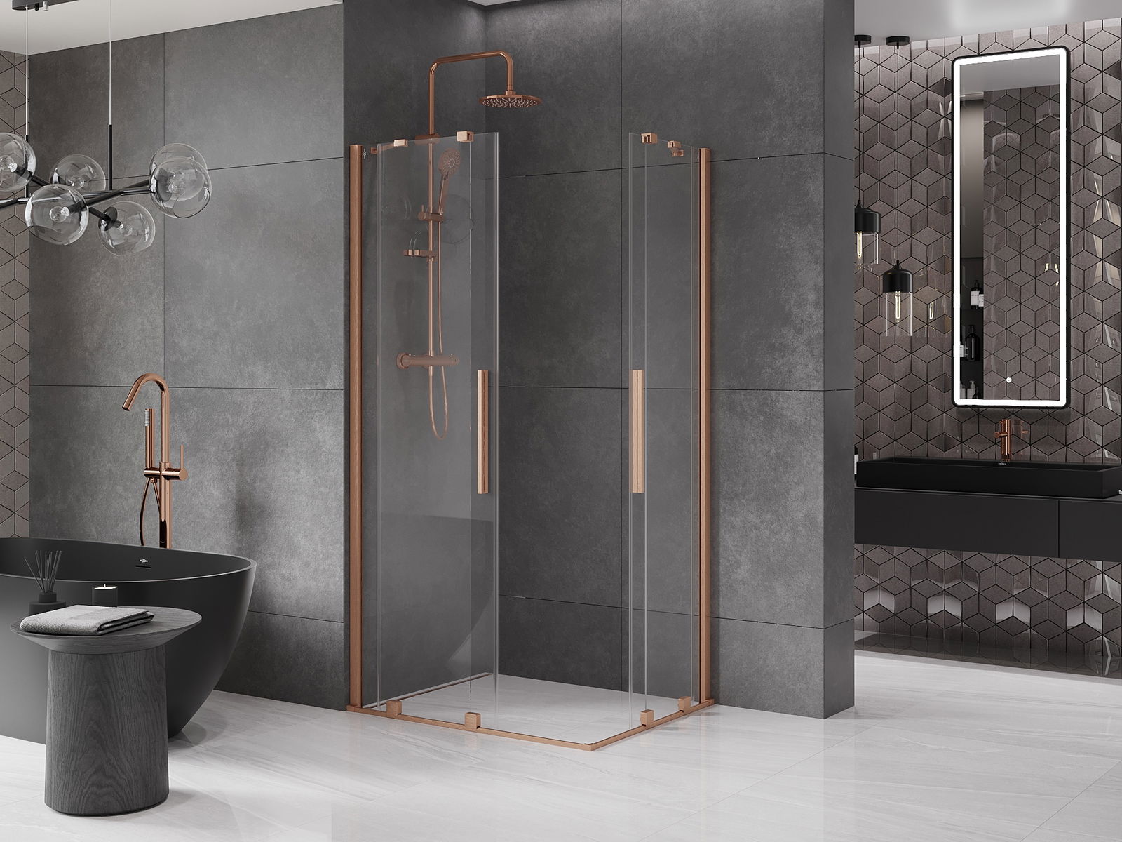 Mexen Velar Duo stumdomas dušo kabina 90 x 80 cm, skaidri, šlifuotas varis - 871-090-080-02-65