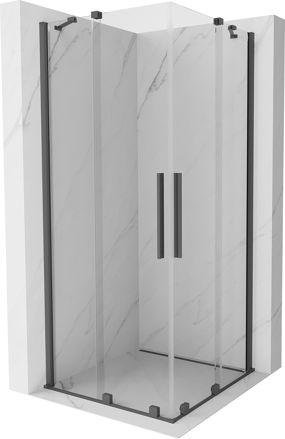 Mexen Velar Dviguba stumdoma dušo kabina 100 x 100 cm, skaidri, šlifuotas ginklo pilkas - 871-100-100-02-66