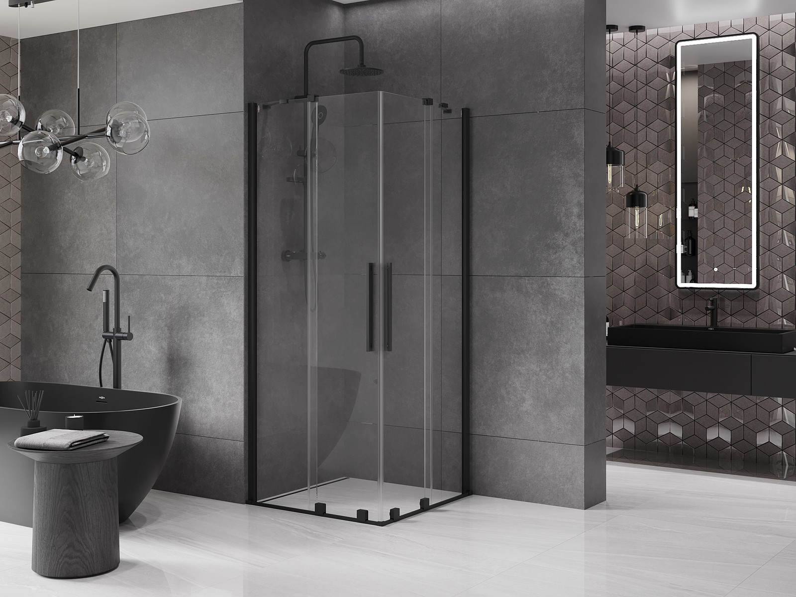 Mexen Velar Dviguba stumdomoji dušo kabina 90 x 90 cm, skaidri, juoda - 871-090-090-02-70