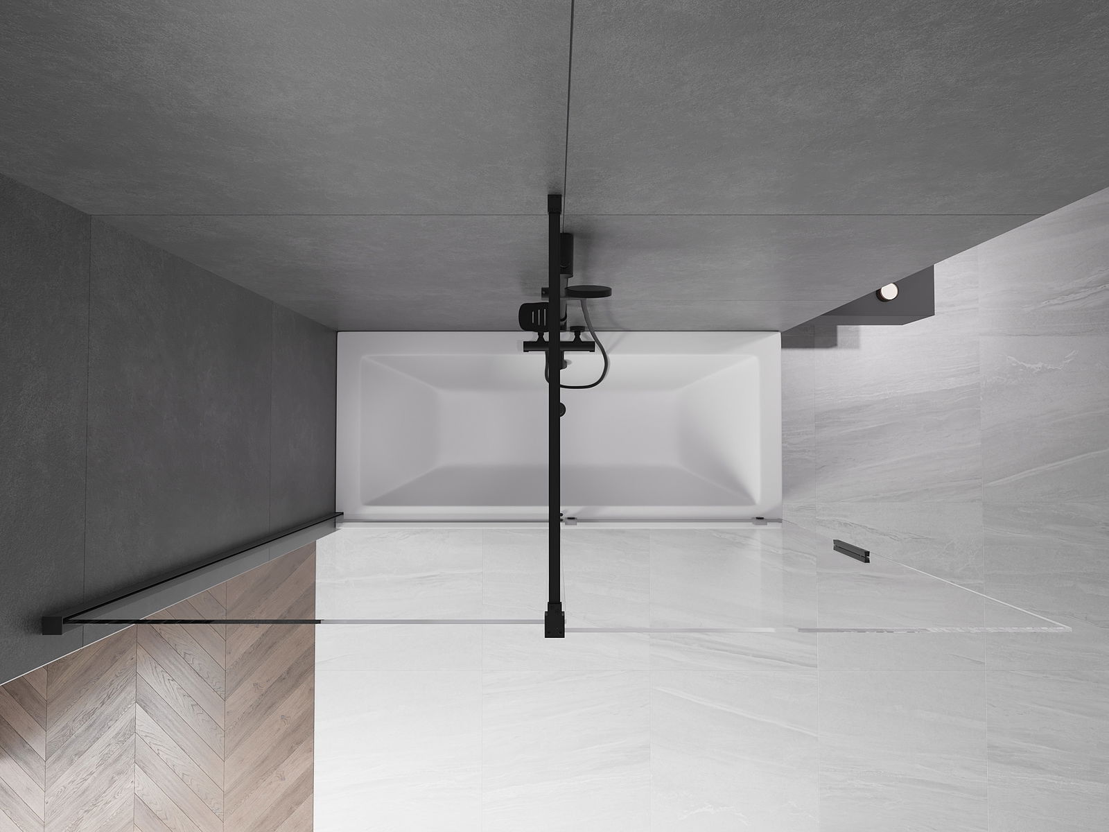 Veiksminga apsauga nuo vandens išsiliejimo maudymosi metu. Ekrane yra antspaudai, kurie puikiai prisitaiko prie stiklo stiklo ir vonios krašto. Funkcinis sprendimas, užtikrinantis saugumą ir lengvą priežiūrą.