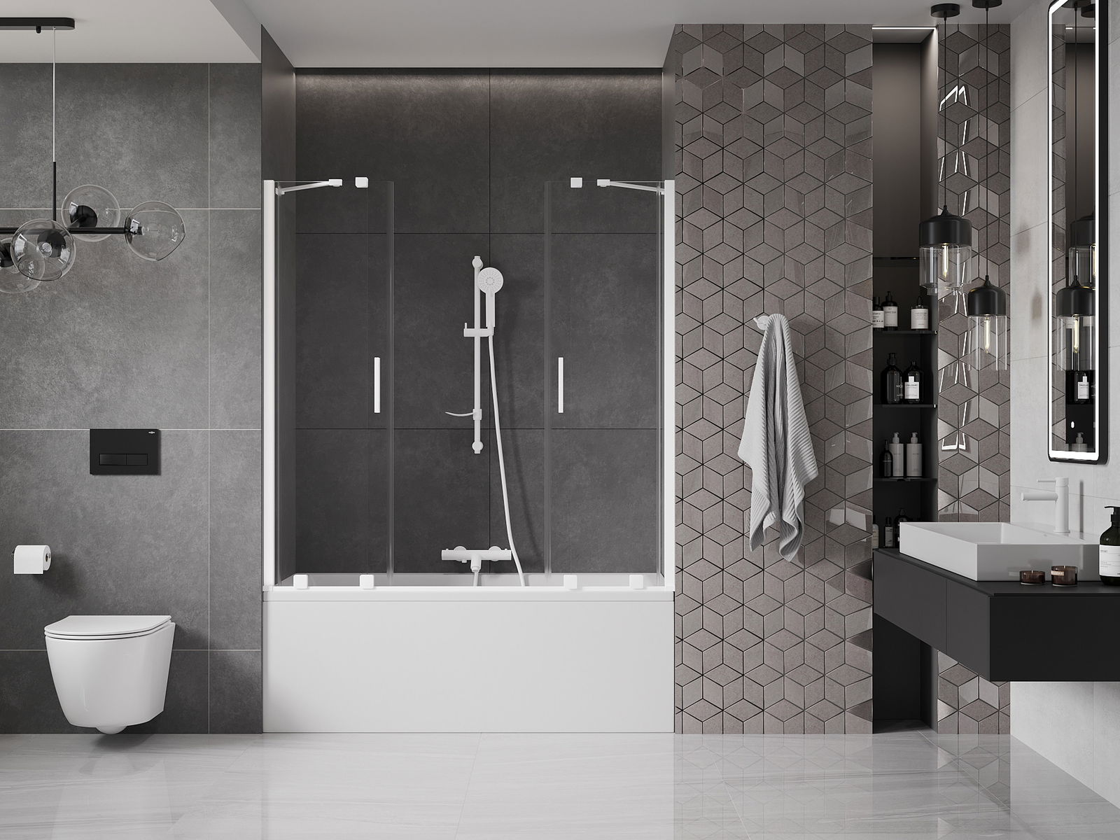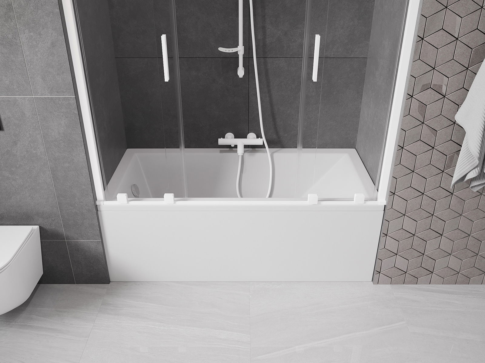 Mexen Velar Duo vonios sienelė 2 sparnų stumdoma 140 x 150 cm, permatoma, balta - 896-140-000-02-20