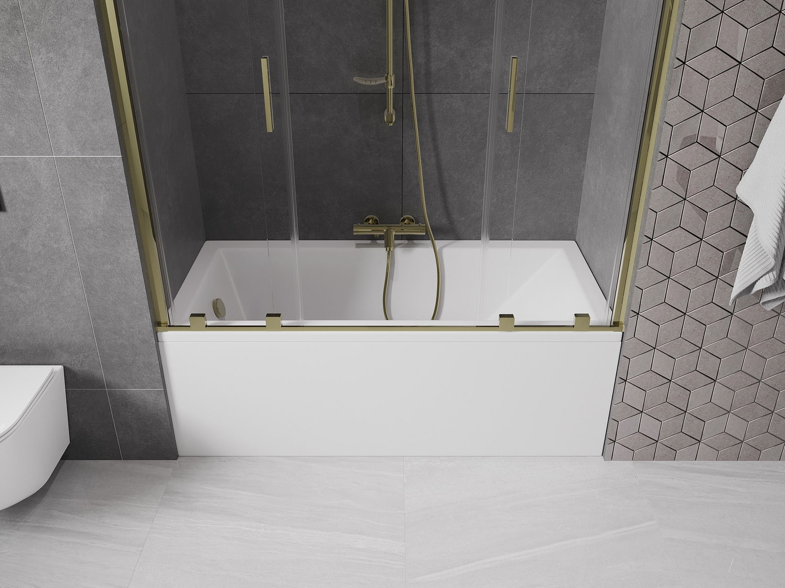 Mexen Velar Duo vonios sienelė 2 dalių stumdomas 140 x 150 cm, skaidrus, auksinis - 896-140-000-02-50