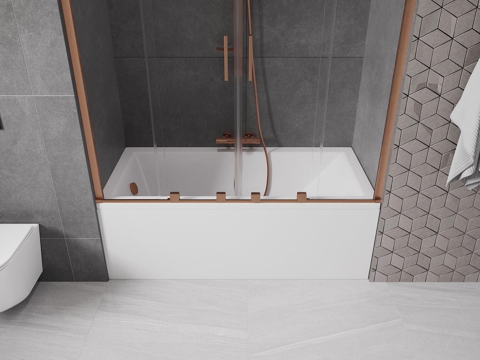 Mexen Velar Duo vonios ekrano paviršius, 2-jų dalių stumdomas 140 x 150 cm, skaidrus, šlifuota varis - 896-140-000-02-65