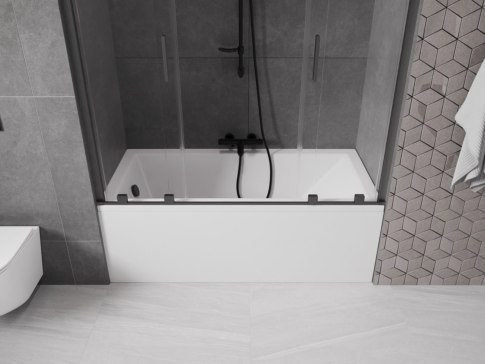 Veiksminga apsauga nuo vandens išsiliejimo maudymosi metu. Ekrane yra antspaudai, kurie puikiai prisitaiko prie stiklo stiklo ir vonios krašto. Funkcinis sprendimas, užtikrinantis saugumą ir lengvą priežiūrą.