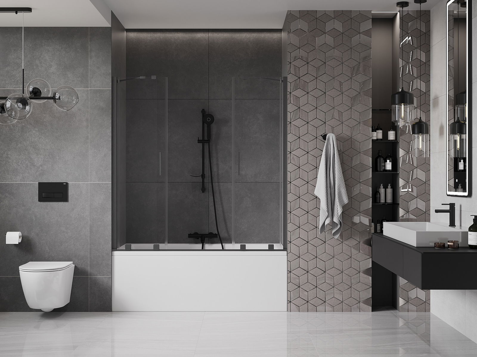 Mexen Velar Duo vonios sienelė 2-jų durų slankiojančios 140 x 150 cm, skaidrios, ginklų pilka šepečiuota - 896-140-000-02-66