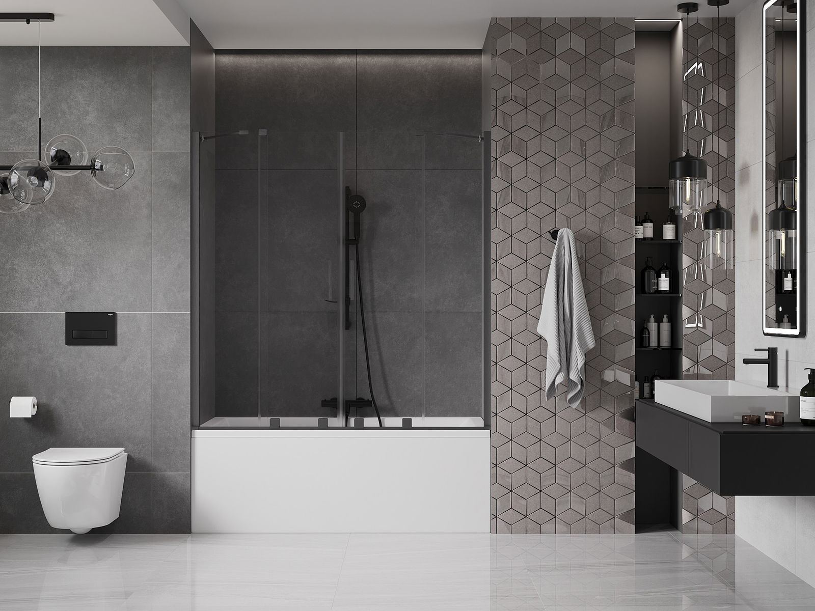 Mexen Velar Duo vonios užuolaida 2-dalių, stumdomas 150 x 150 cm, skaidrus, šlifuotas ginklo pilkumas - 896-150-000-02-66