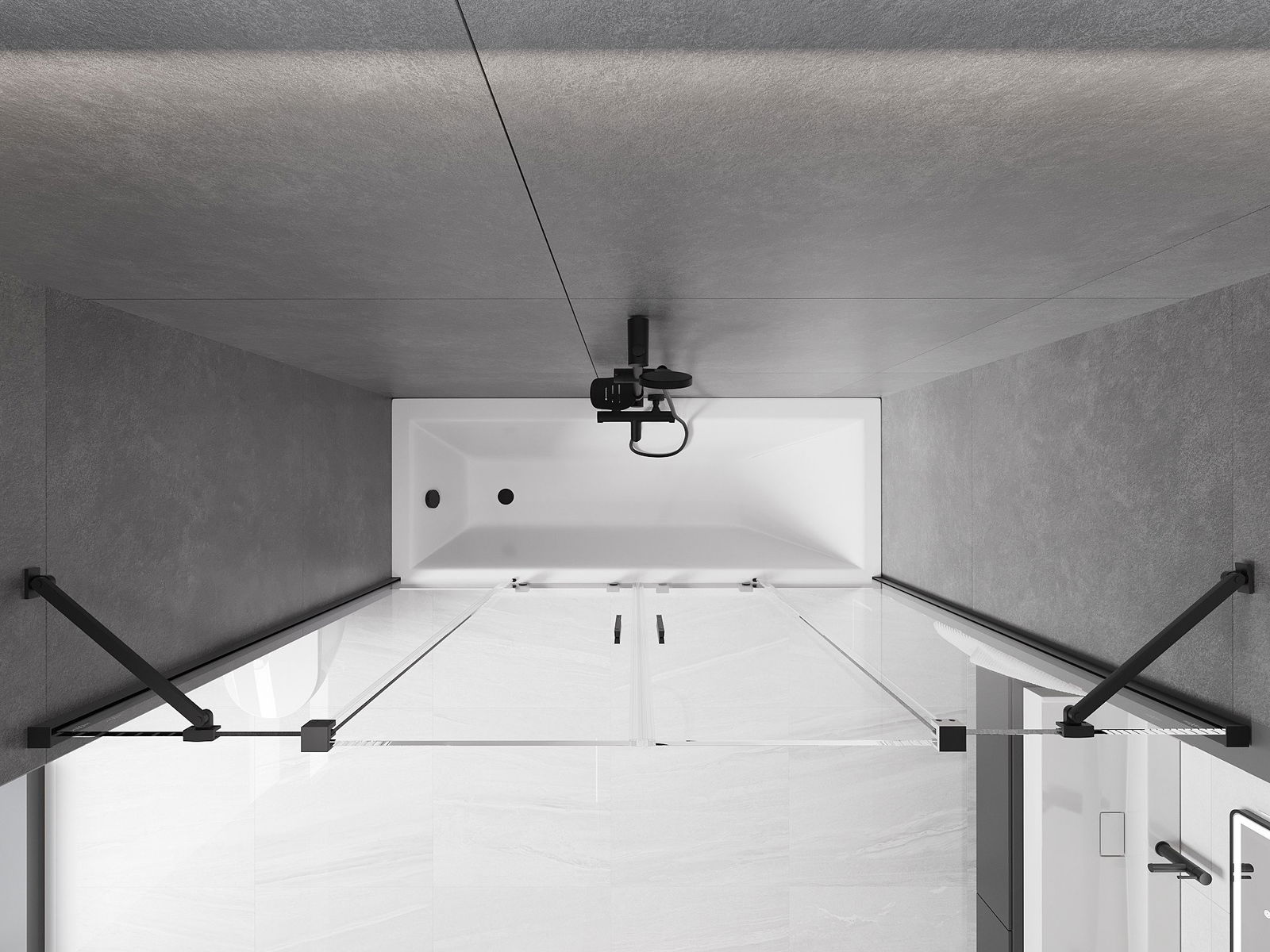 Mexen Velar Duo vonios sienelė 2 dalių, stumdomas 200 x 150 cm, skaidrus, juodas - 896-200-000-02-70