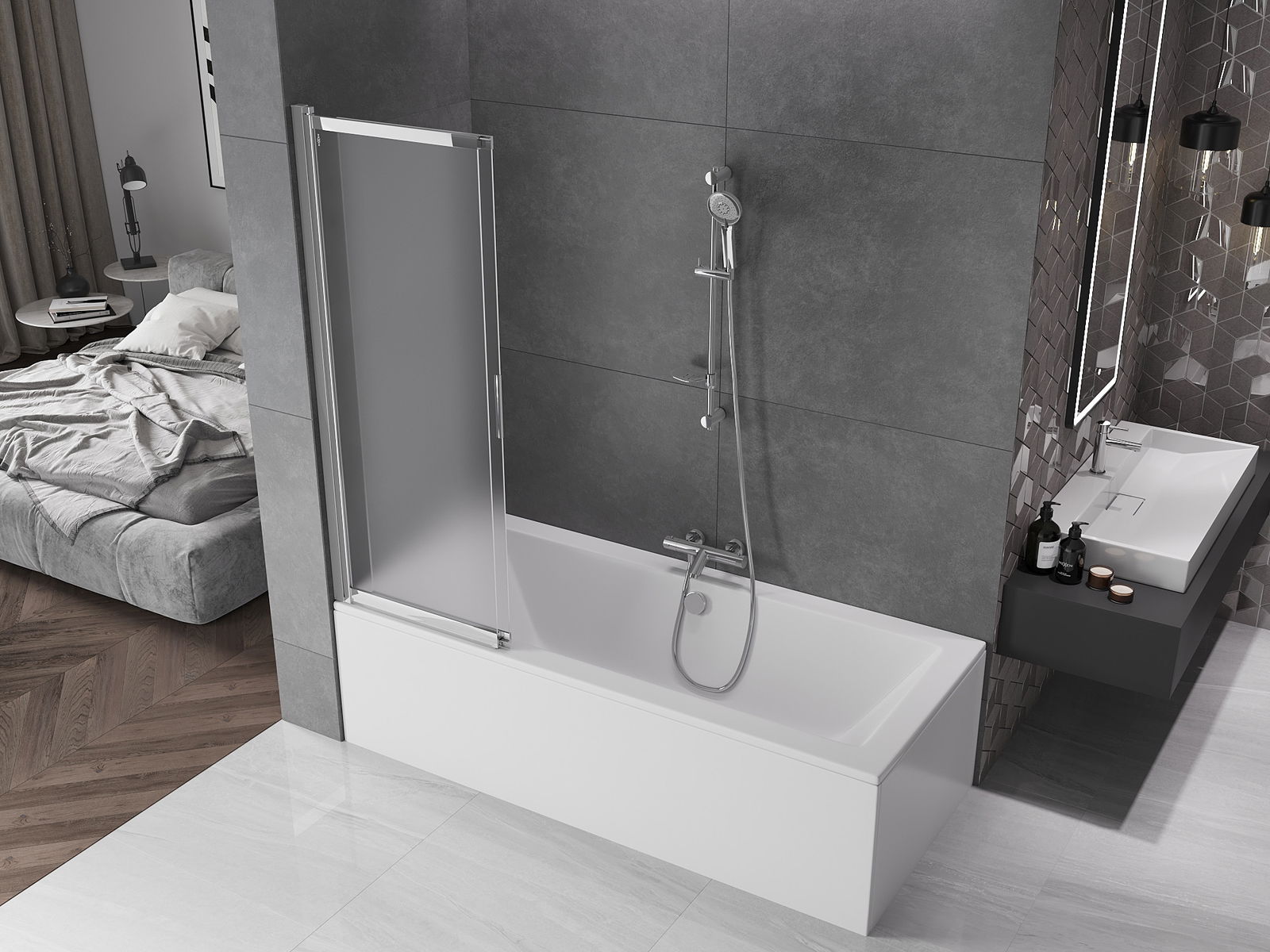 Veiksminga apsauga nuo vandens išsiliejimo maudymosi metu. Ekrane yra antspaudai, kurie puikiai prisitaiko prie stiklo stiklo ir vonios krašto. Funkcinis sprendimas, užtikrinantis saugumą ir lengvą priežiūrą.