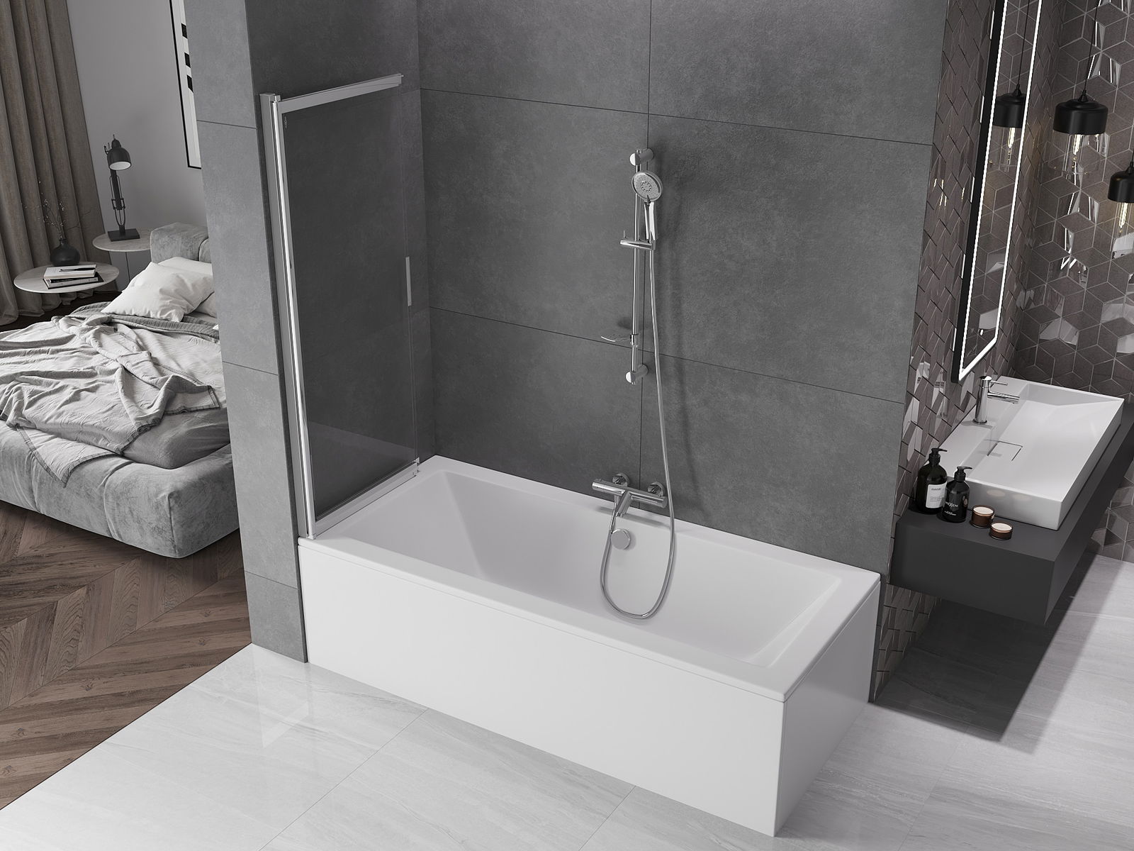 Veiksminga apsauga nuo vandens išsiliejimo maudymosi metu. Ekrane yra antspaudai, kurie puikiai prisitaiko prie stiklo stiklo ir vonios krašto. Funkcinis sprendimas, užtikrinantis saugumą ir lengvą priežiūrą.