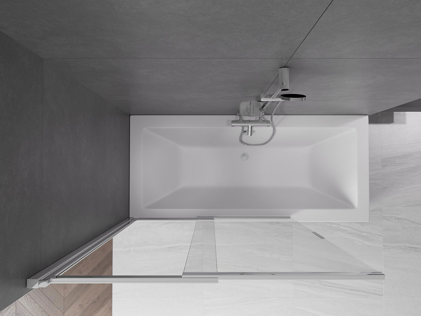 Naudojant universalią fiksavimo sistemą, ekraną galima pritvirtinti dešinėje arba kairėje, atsižvelgiant į jūsų poreikius. Tokiu būdu galite lengvai suprojektuoti dušą, pritaikytą vonios kambario erdvei.