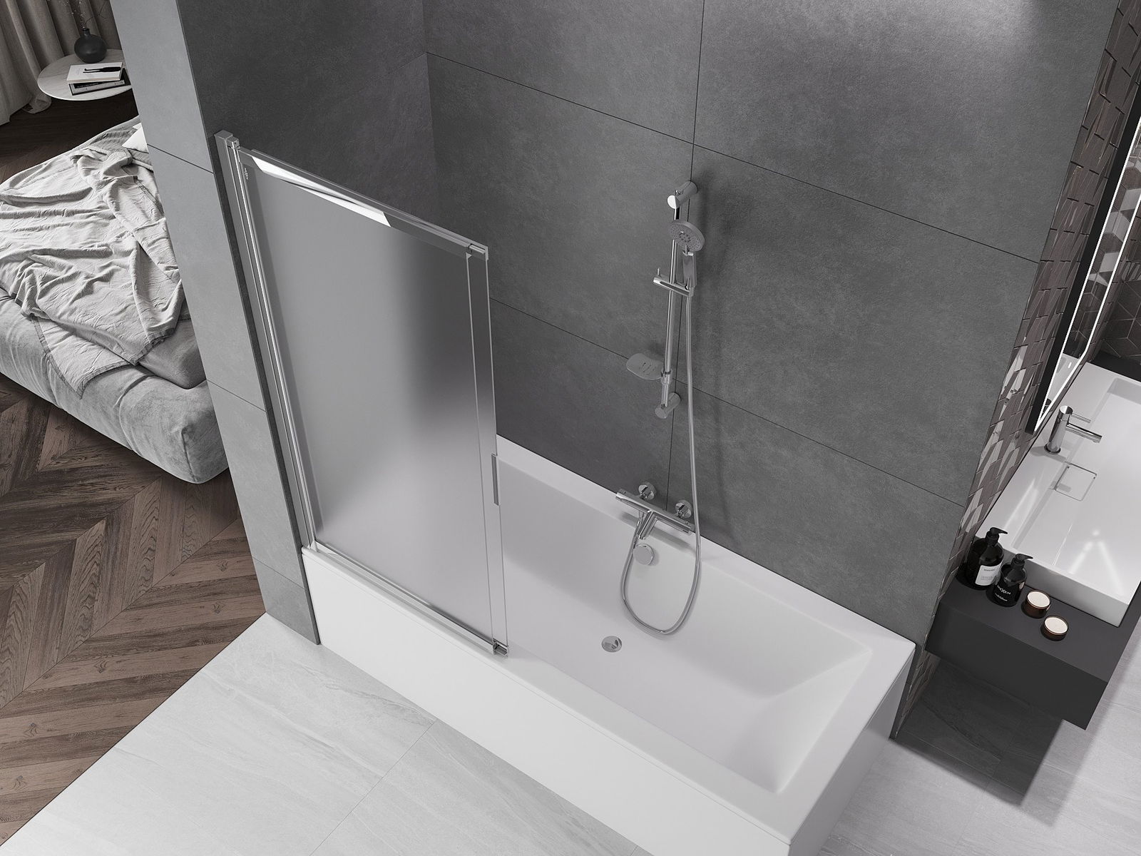 Veiksminga apsauga nuo vandens išsiliejimo maudymosi metu. Ekrane yra antspaudai, kurie puikiai prisitaiko prie stiklo stiklo ir vonios krašto. Funkcinis sprendimas, užtikrinantis saugumą ir lengvą priežiūrą.