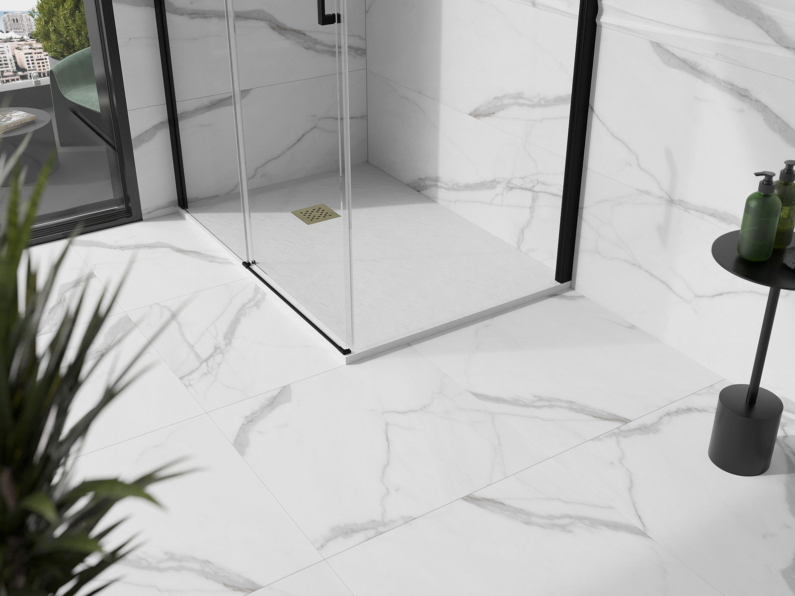 Mexen Stone+ stačiakampė kompozitinė dušo padėklė 130 x 90 cm, balta, auksinė danga - 44109013-G