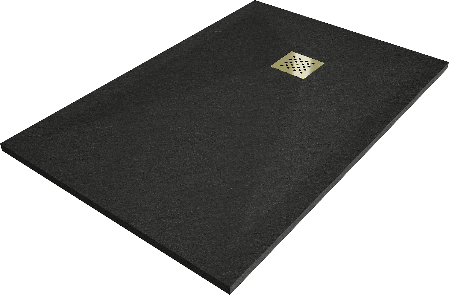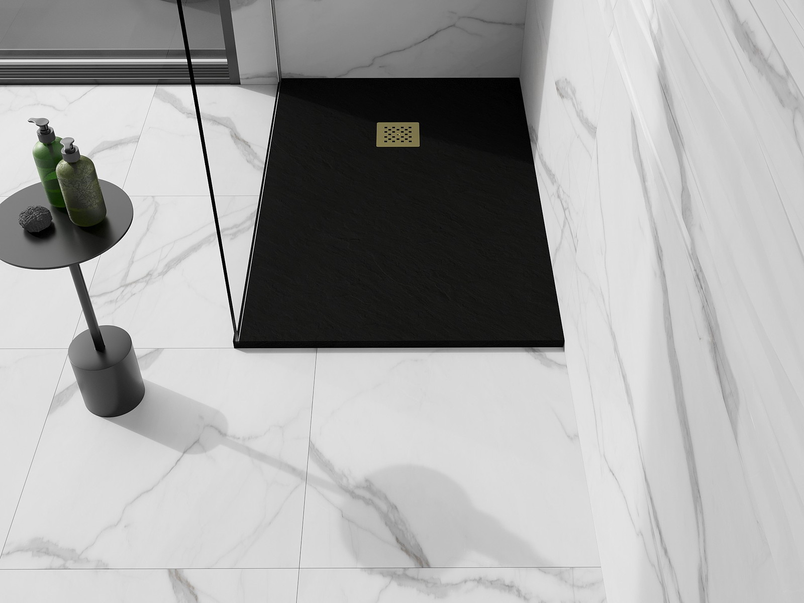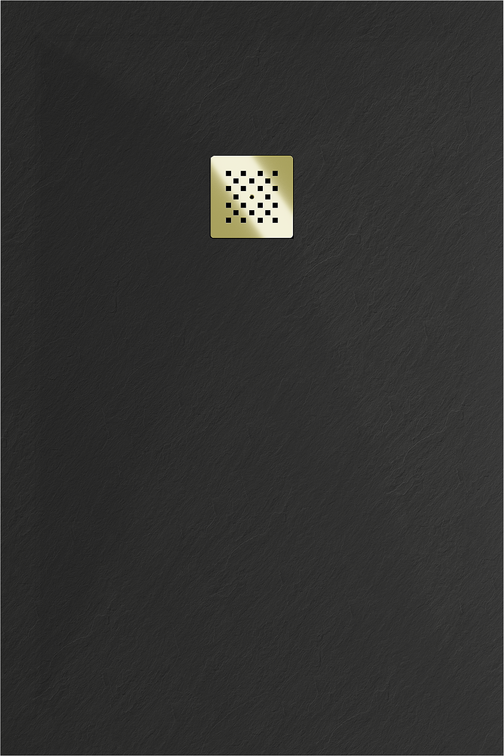 Mexen Stone+ stačiakampė kompozicinė dušo kabina 100 x 80 cm, juoda, auksinė danga - 44708010-G