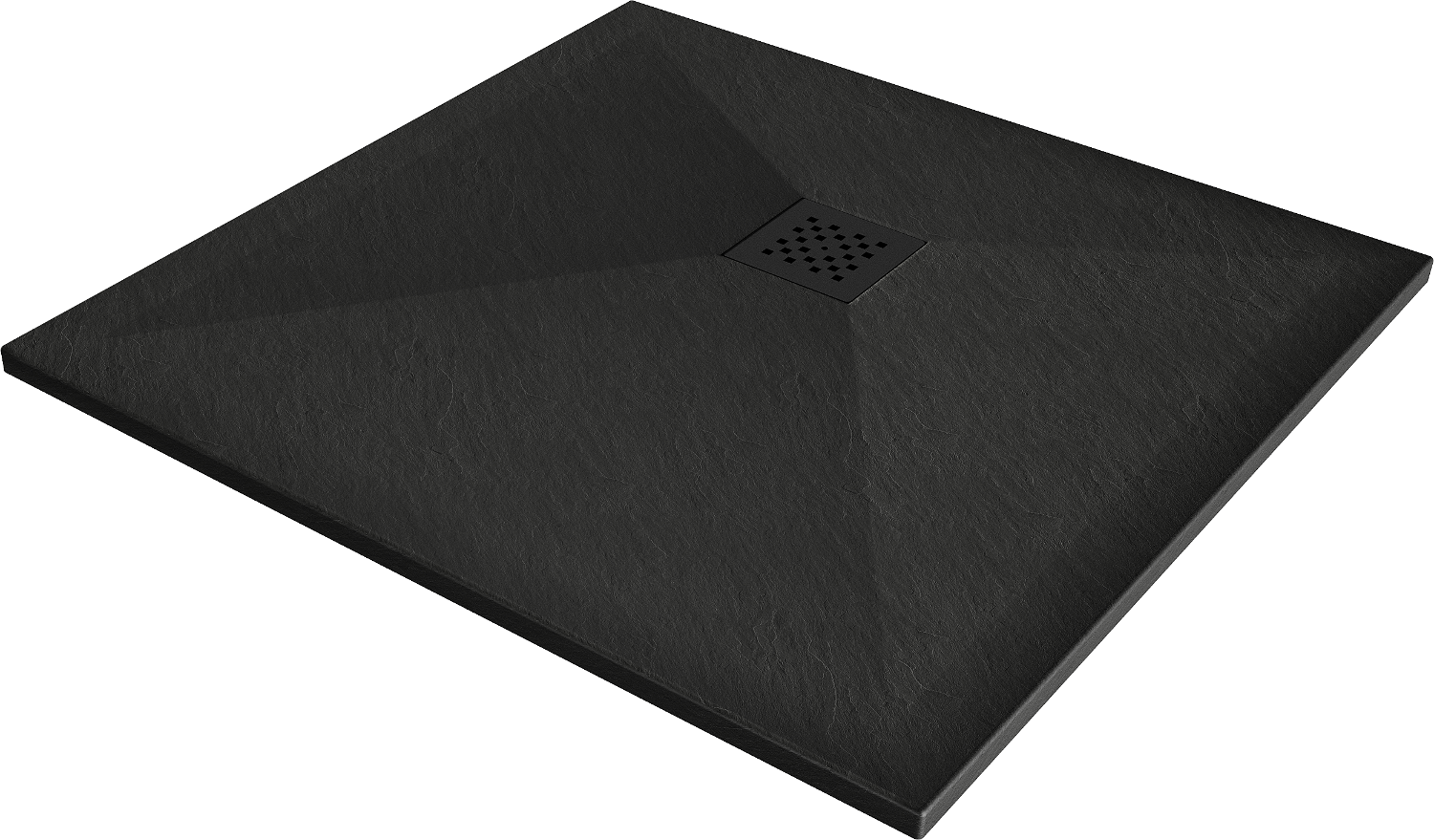 Mexen Stone+ kompozitinis kvadratinis dušo padėklas 90 x 90 cm, juodas, juoda maskuotė - 44709090-B