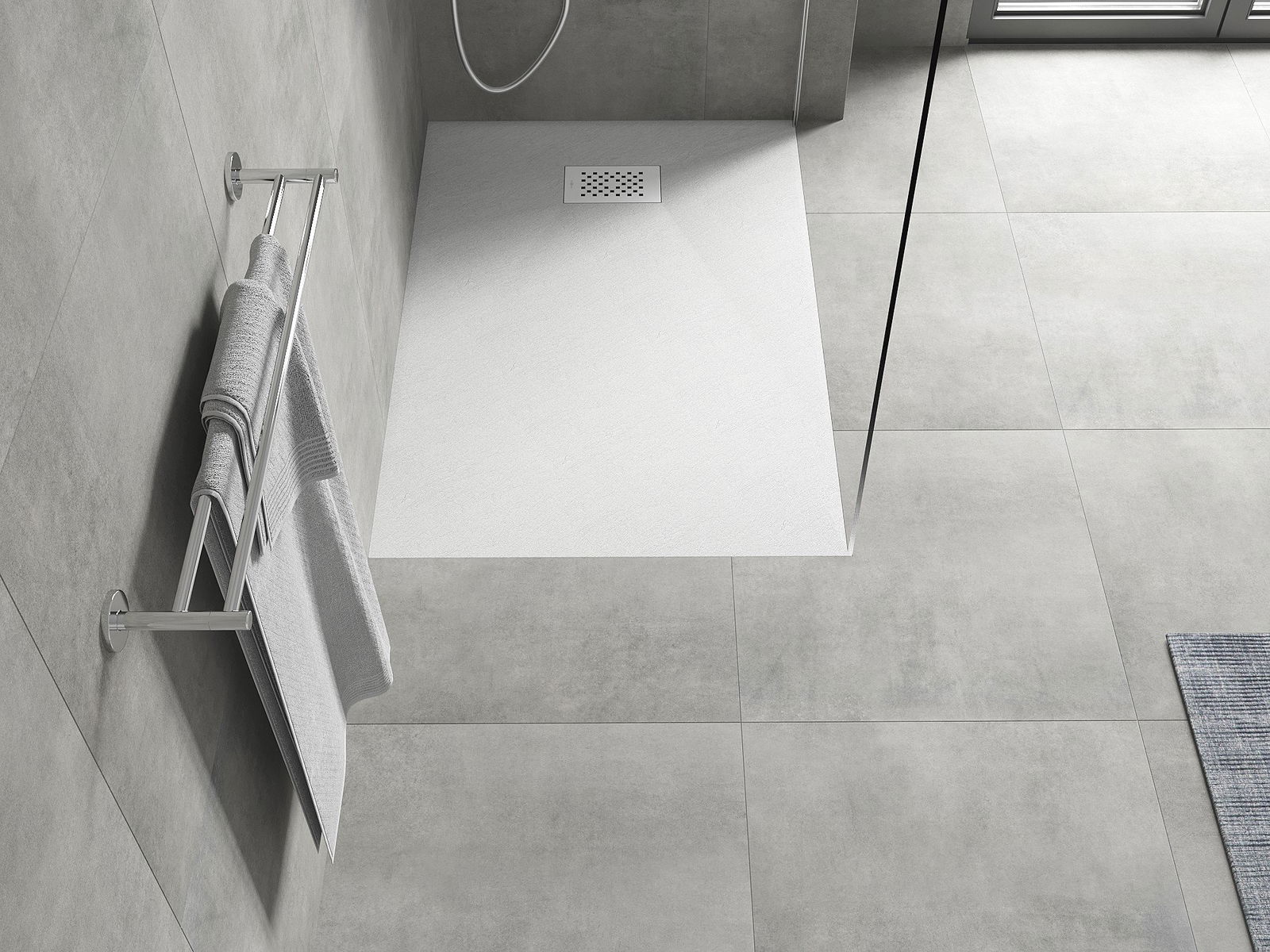 Dušo dėklo paviršius primena akmenį su jo struktūra. Tai unikalus natūralios išvaizdos derinys su šiuolaikišku interjero išdėstymu. Tai prideda charakterio, pabrėžia vonios dekoro estetiką ir eleganciją bei daro įspūdį savo forma.