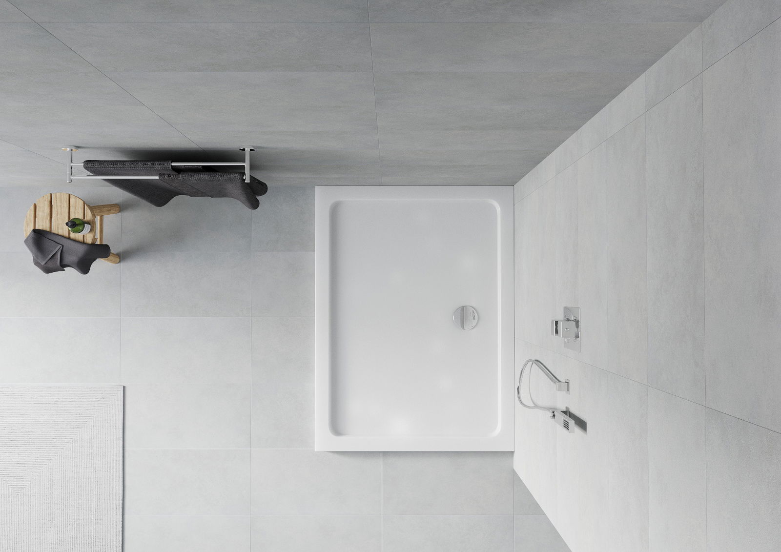 Mexen Flat stačiakampė plokščiasis dušo padėklas 90 x 80 cm, baltas, chromuotas sifonas - 40108090
