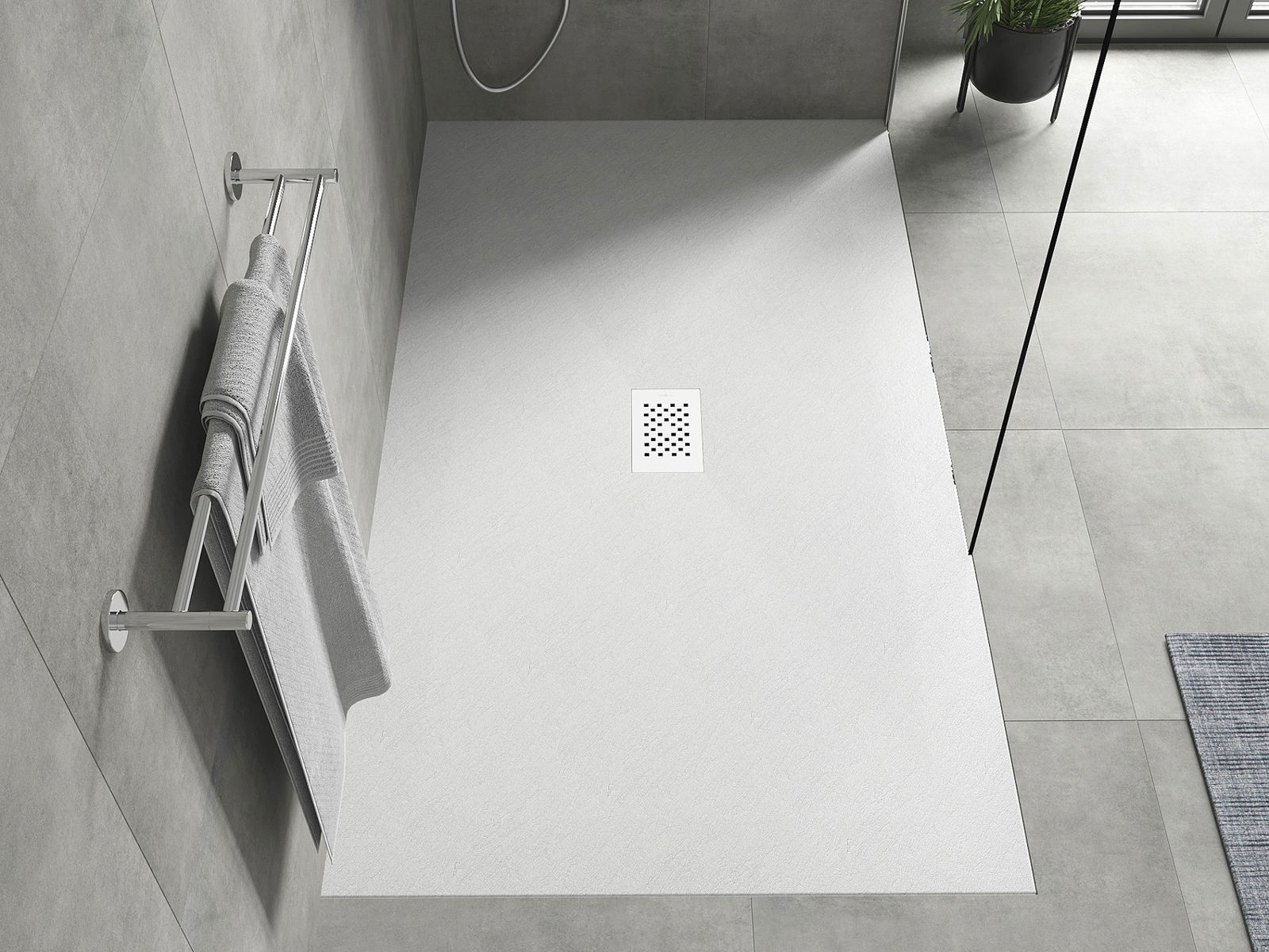 Dušo dėklo paviršius primena akmenį su jo struktūra. Tai unikalus natūralios išvaizdos derinys su šiuolaikišku interjero išdėstymu. Tai prideda charakterio, pabrėžia vonios dekoro estetiką ir eleganciją bei daro įspūdį savo forma.