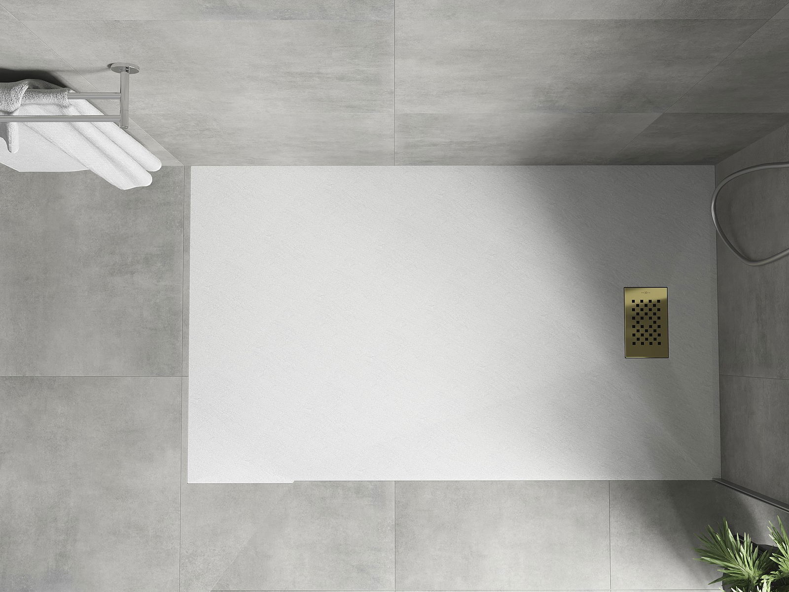 Mexen Hugo stačiakampis dušo padėklas SMC 150 x 70 cm, baltas, auksinė dangtelis - 42107015-G