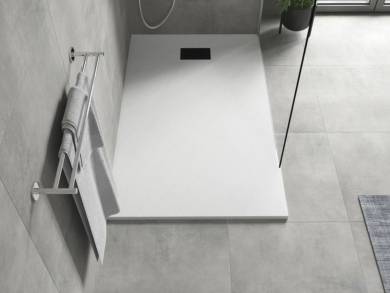 Dušo padėklo paviršius savo struktūra primena akmenį. Tai unikalus natūralios išvaizdos ir modernios vidaus erdvės išdėstymo derinys. Suteikia charakterį, pabrėžia estetiką ir eleganciją vonios kambario dizainui bei žavi savo forma.