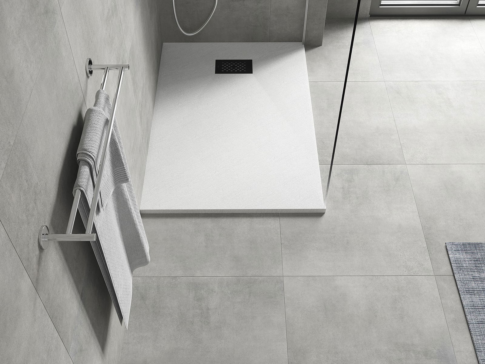 Dušo dėklo paviršius primena akmenį su jo struktūra. Tai unikalus natūralios išvaizdos derinys su šiuolaikišku interjero išdėstymu. Tai prideda charakterio, pabrėžia vonios dekoro estetiką ir eleganciją bei daro įspūdį savo forma.
