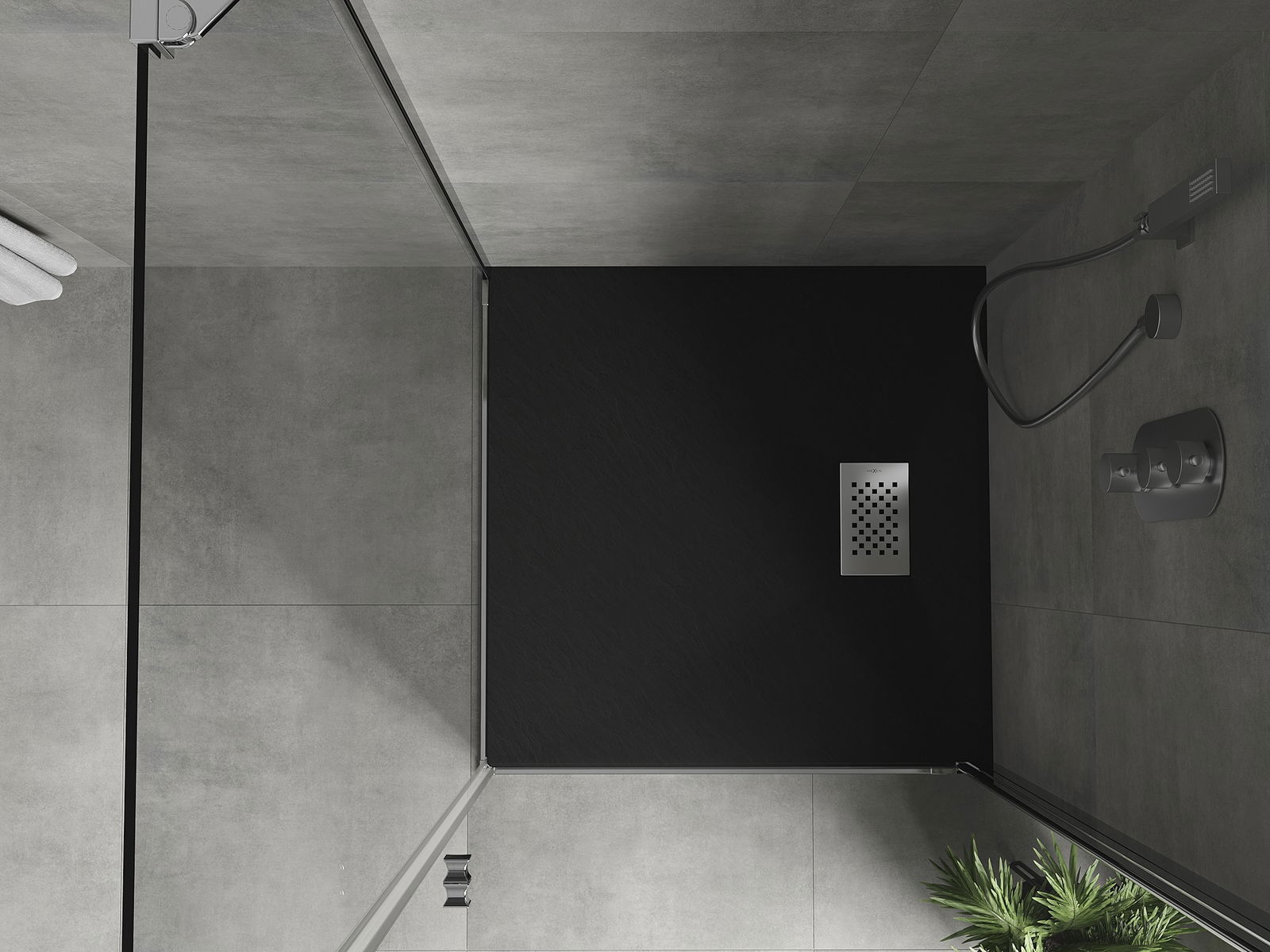 Mexen Hugo kvadratinis dušo padėklas SMC 70 x 70 cm, juodas, inox dangtelis - 42707070-X