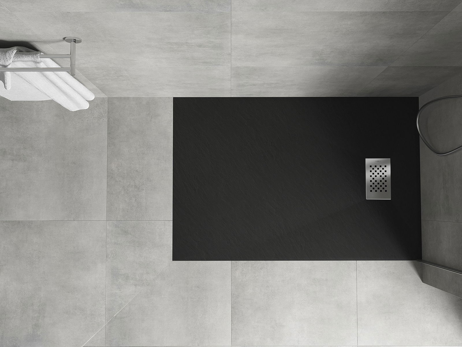 Dušo dėklo paviršius primena akmenį su jo struktūra. Tai unikalus natūralios išvaizdos derinys su šiuolaikišku interjero išdėstymu. Tai prideda charakterio, pabrėžia vonios dekoro estetiką ir eleganciją bei daro įspūdį savo forma.