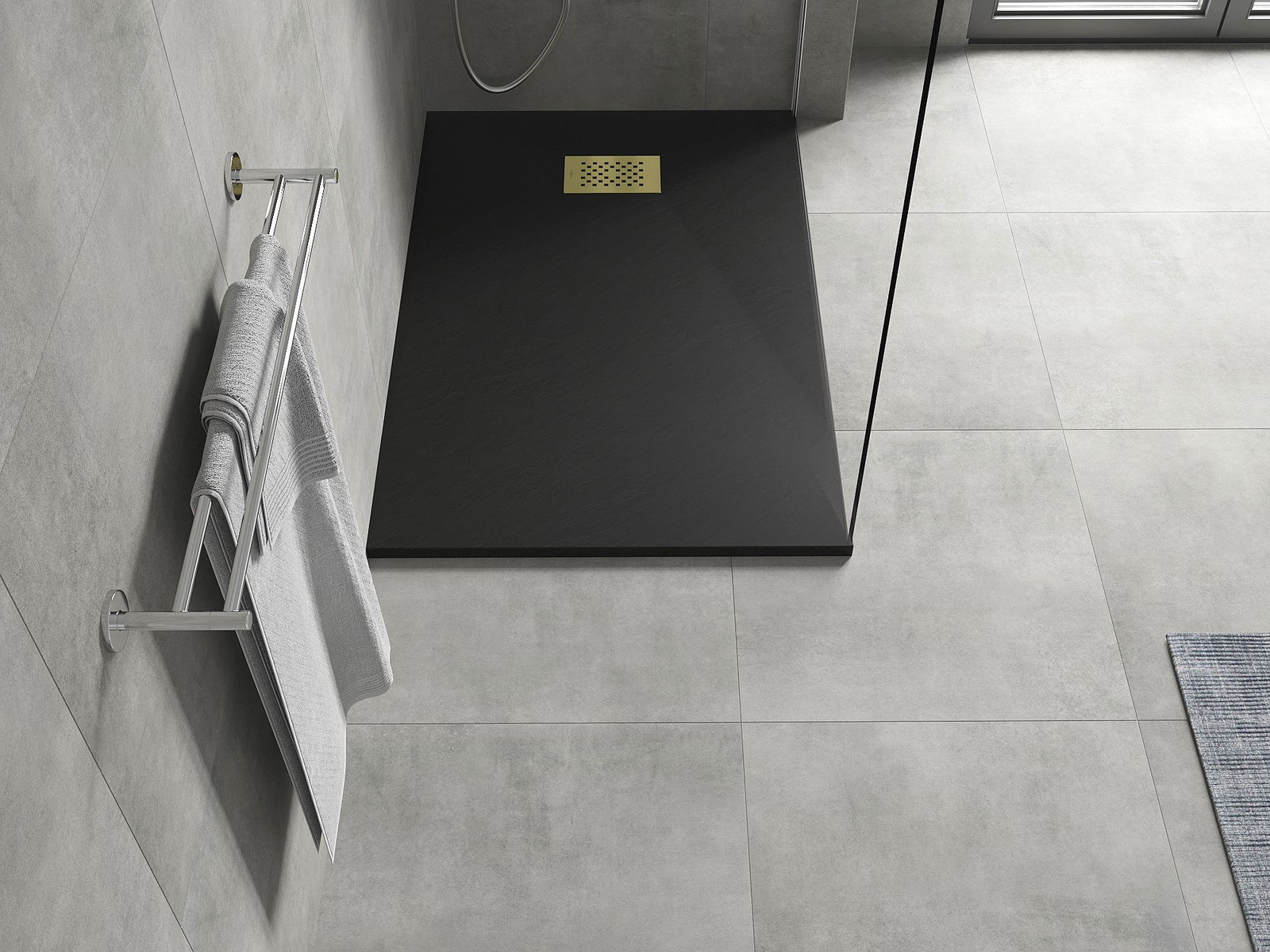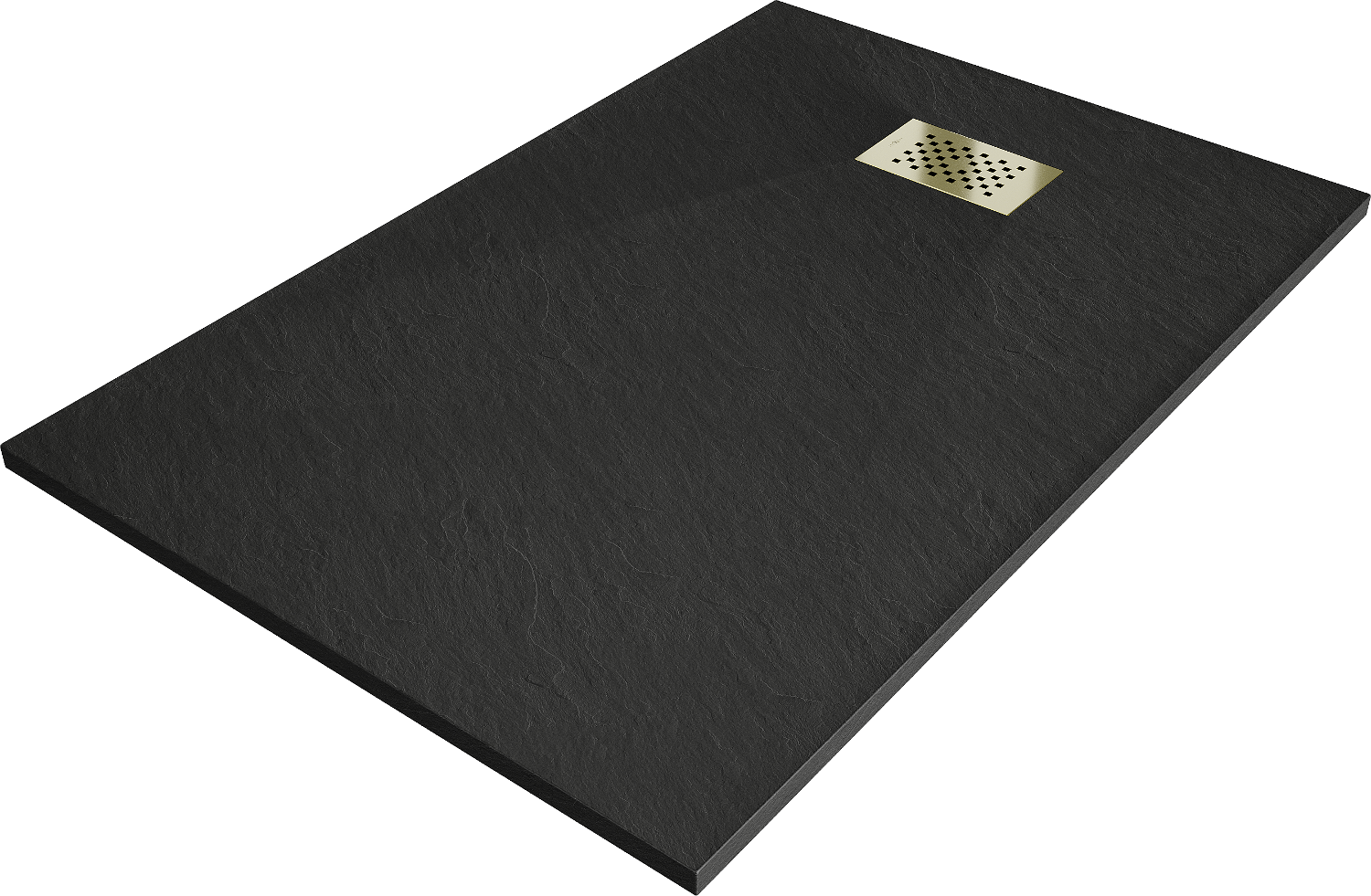Mexen Hugo stačiakampis dušo padėklas SMC 110 x 70 cm, juodas, auksinis dangtelis - 42707011-G