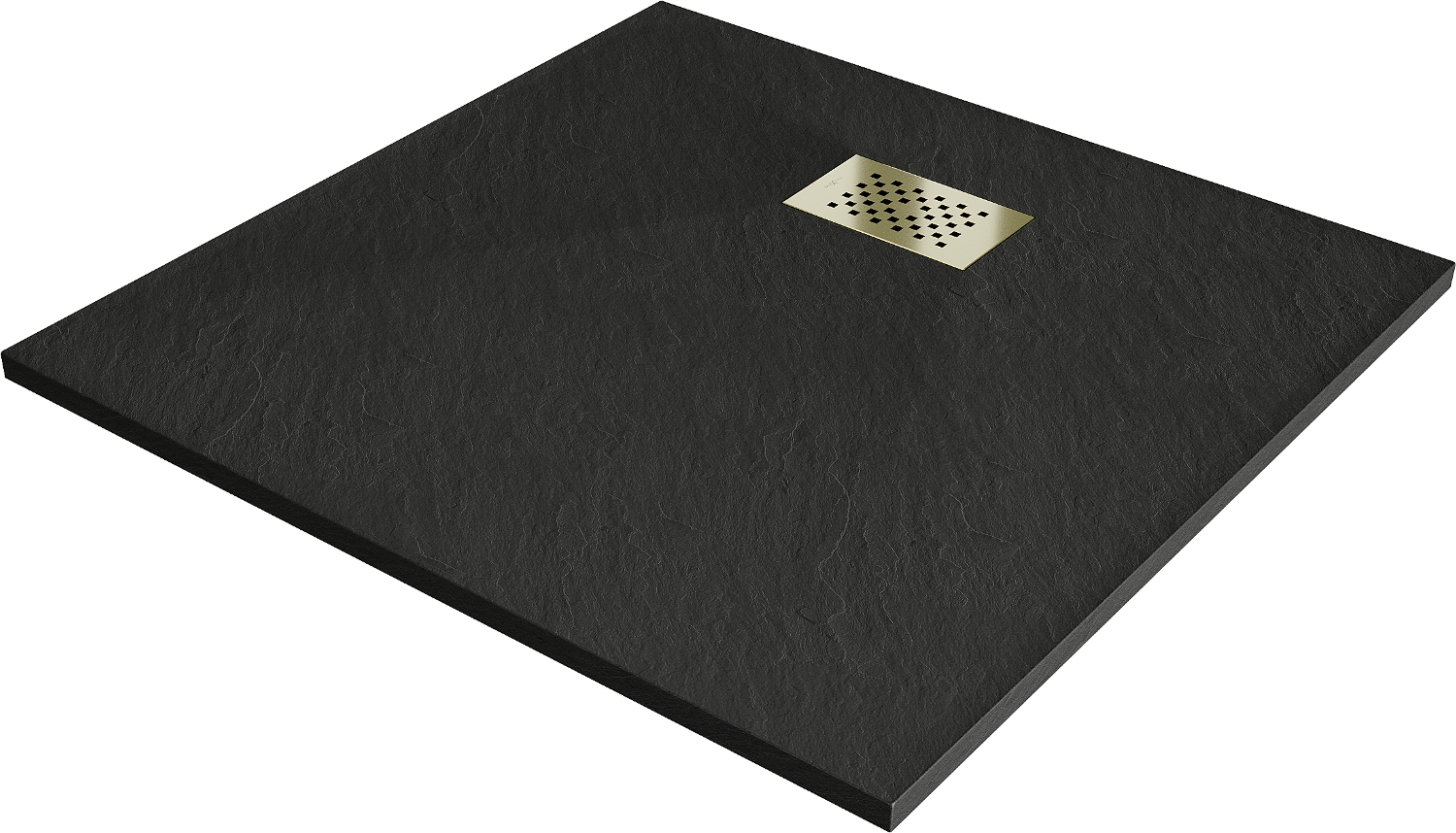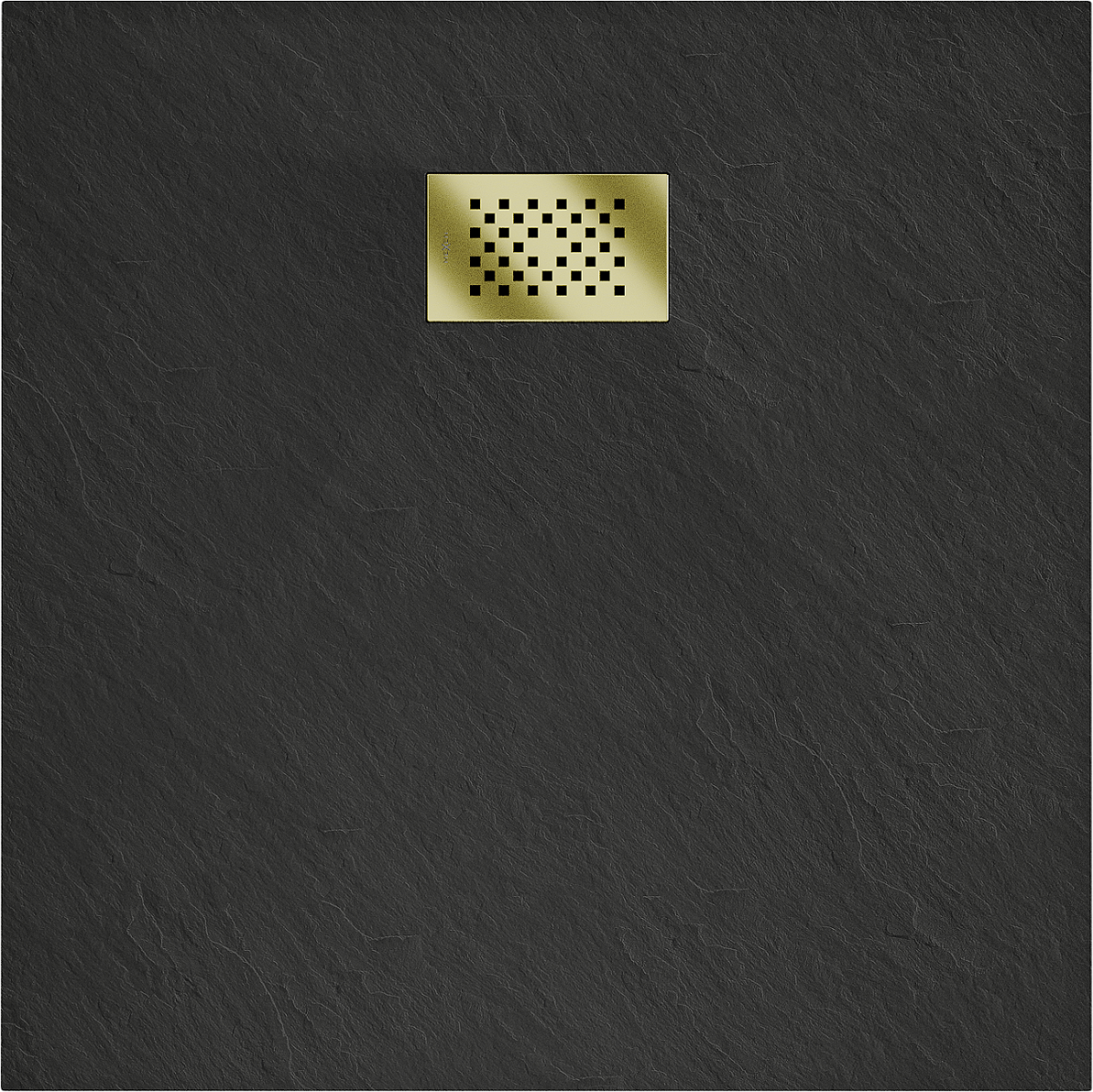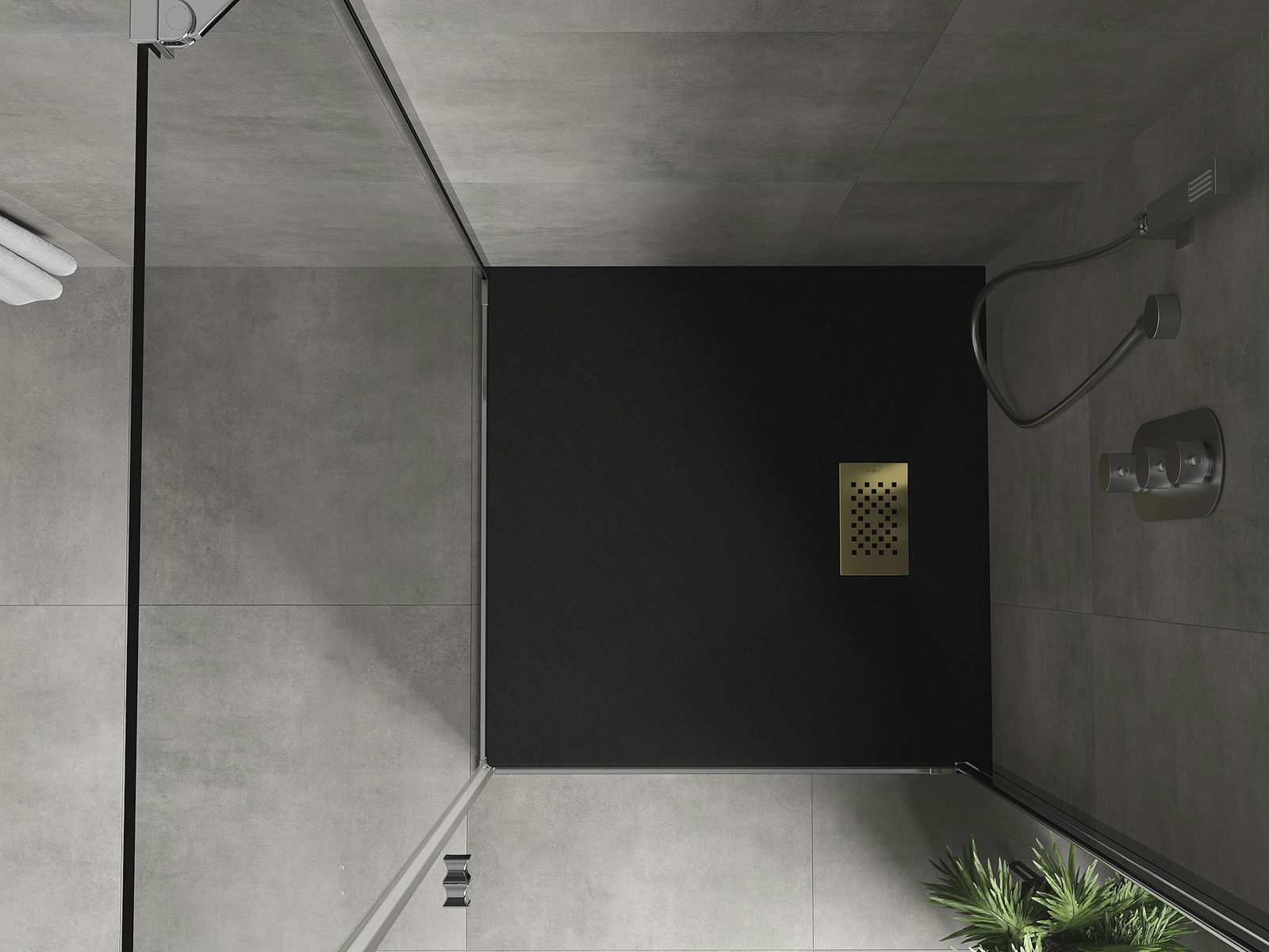 Mexen Hugo kvadratinis dušo padėklas SMC 80 x 80 cm, juodas, aukso spalvos dangtelis - 42708080-G