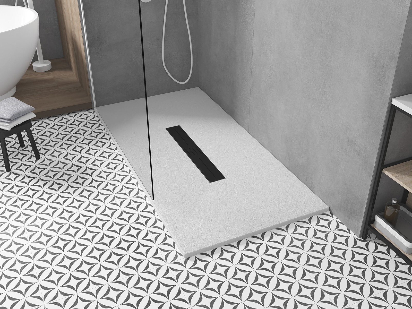Nedidelis dušo padėklo aukštis leidžia tradicinį montavimą ant grindų arba įleidimą į grindis, sukuriant išskirtinį, vientisą paviršių. Montavimo lankstumas leidžia pritaikyti dušo padėklą įvairioms interjero kompozicijoms.