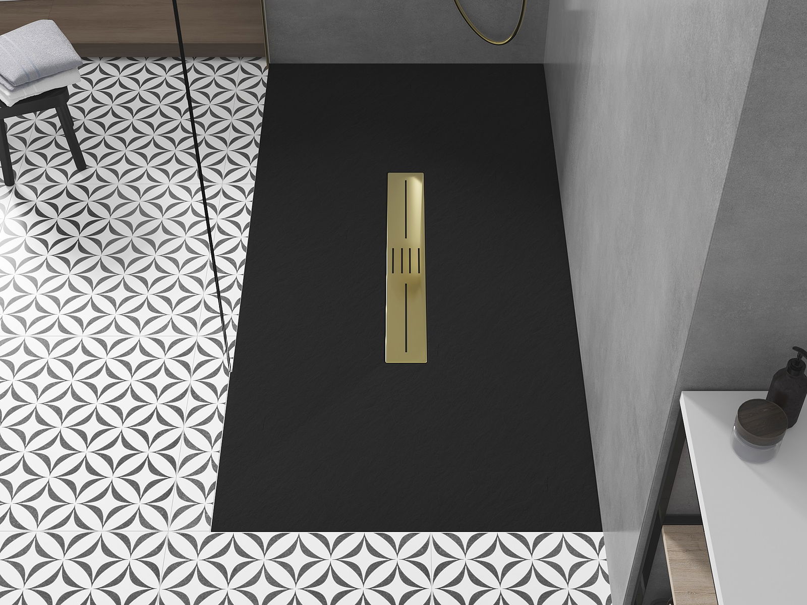 Mexen Toro stačiakampis dušo padėklas SMC 170 x 70 cm, juodas, auksinė dangtelis - 43707017-G