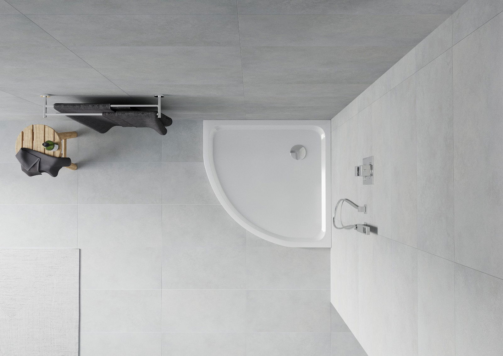 Pusapvalis plonas dušo padėklas, kurio matmenys yra 90 x 90 cm, yra puikus sprendimas šiuolaikinei voniai. Pagamintas iš aukštos kokybės sanitarinio akrilo, užtikrina ilgaamžiškumą ir komfortą naudojantis. Jo balta spalva ir blizgesys leidžia pritaikyti įvairiuose interjeruose. Dėl 5 cm storio konstrukcijos lengva montuoti, o komplekte yra sifonas valomas iš viršaus, kurio nutekėjimo skersmuo yra 90 mm. Tai funkcionalus pasirinkimas, kuris derina elegantiškumą su praktiškumu.