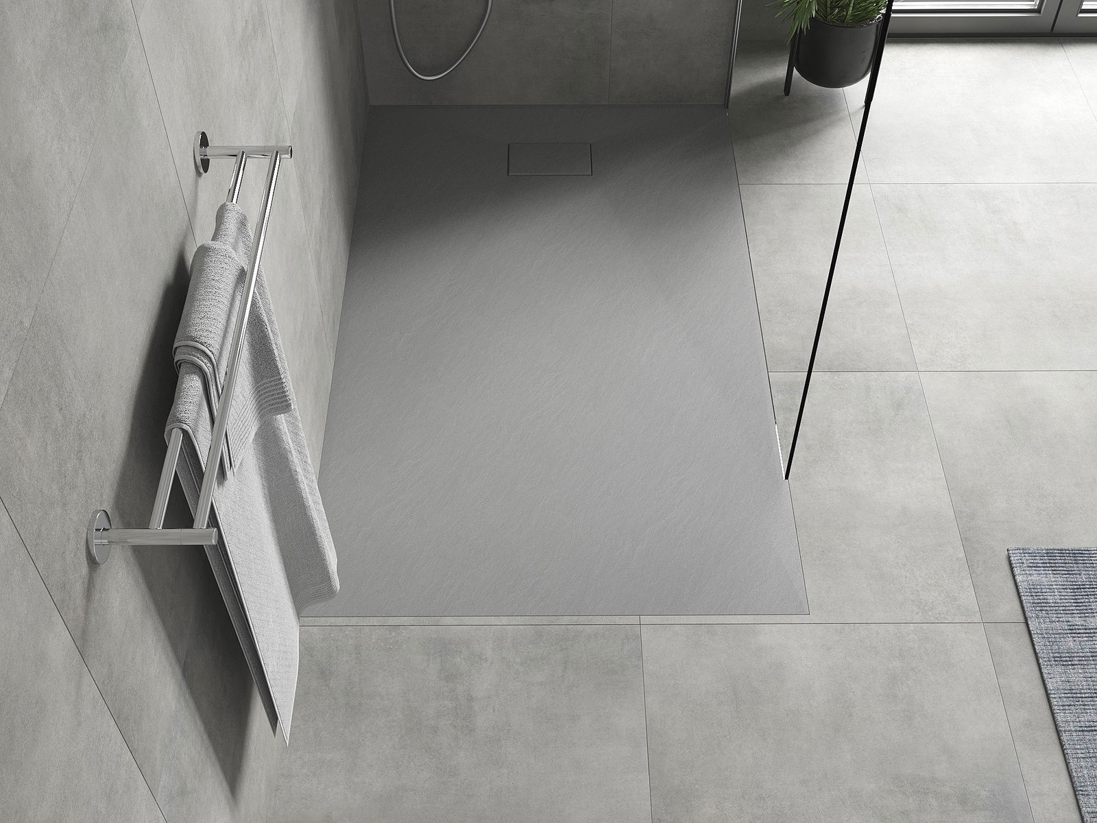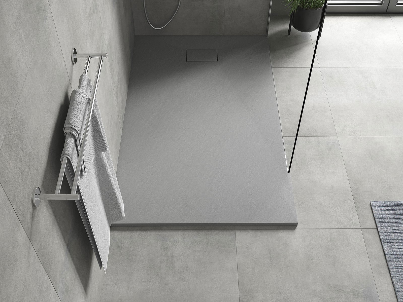 Dušo dėklo paviršius primena akmenį su jo struktūra. Tai unikalus natūralios išvaizdos derinys su šiuolaikišku interjero išdėstymu. Tai prideda charakterio, pabrėžia vonios dekoro estetiką ir eleganciją bei daro įspūdį savo forma.