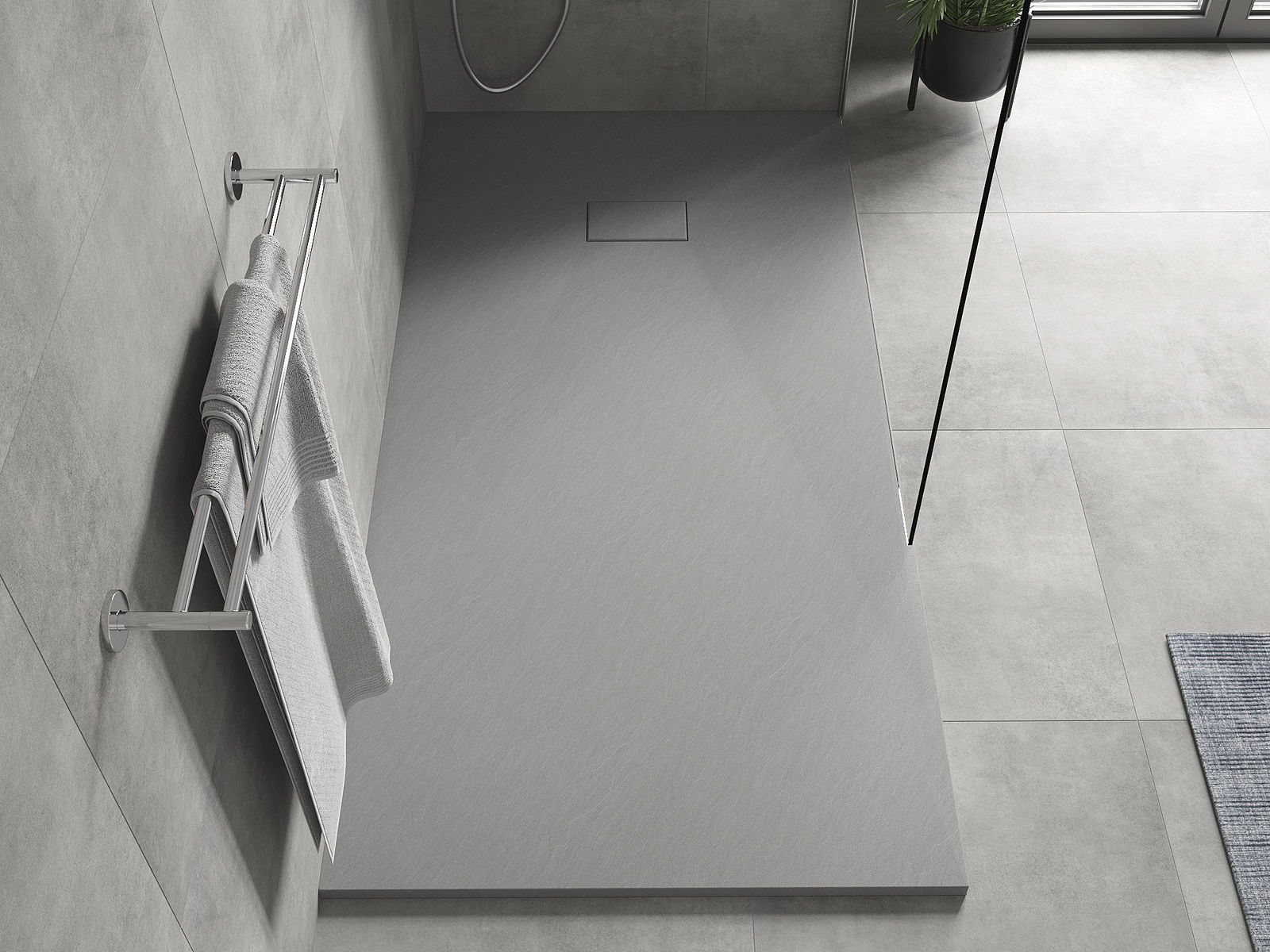 Dušo dėklo paviršius primena akmenį su jo struktūra. Tai unikalus natūralios išvaizdos derinys su šiuolaikišku interjero išdėstymu. Tai prideda charakterio, pabrėžia vonios dekoro estetiką ir eleganciją bei daro įspūdį savo forma.