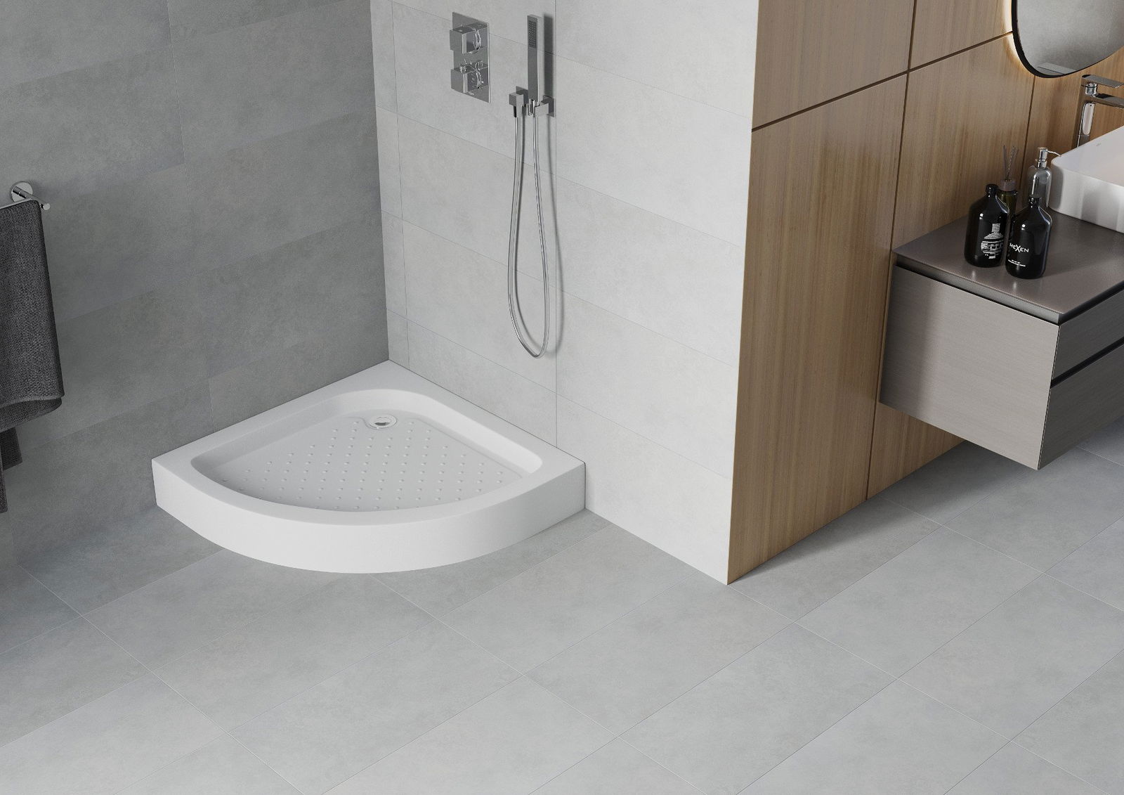 Pusapvalis dušo padėklas, kurio matmenys 90 x 90 cm, yra idealus sprendimas bet kuriai voniai. Pagamintas iš tvirto sanitarinio akrilo, užtikrina ne tik estetinę išvaizdą baltoje spalvoje, bet ir aukštą atsparumą pažeidimams. Dėl 14 cm storio ir sutvirtintos apatinės dalies užtikrina stabilumą ir naudojimo komfortą. Komplekte yra valomas viršuje sifonas, o nutekėjimo skersmuo yra 50 mm. Klasikinė, blizgi chromu apdaila suteikia elegancijos bet kokiam interjerui.