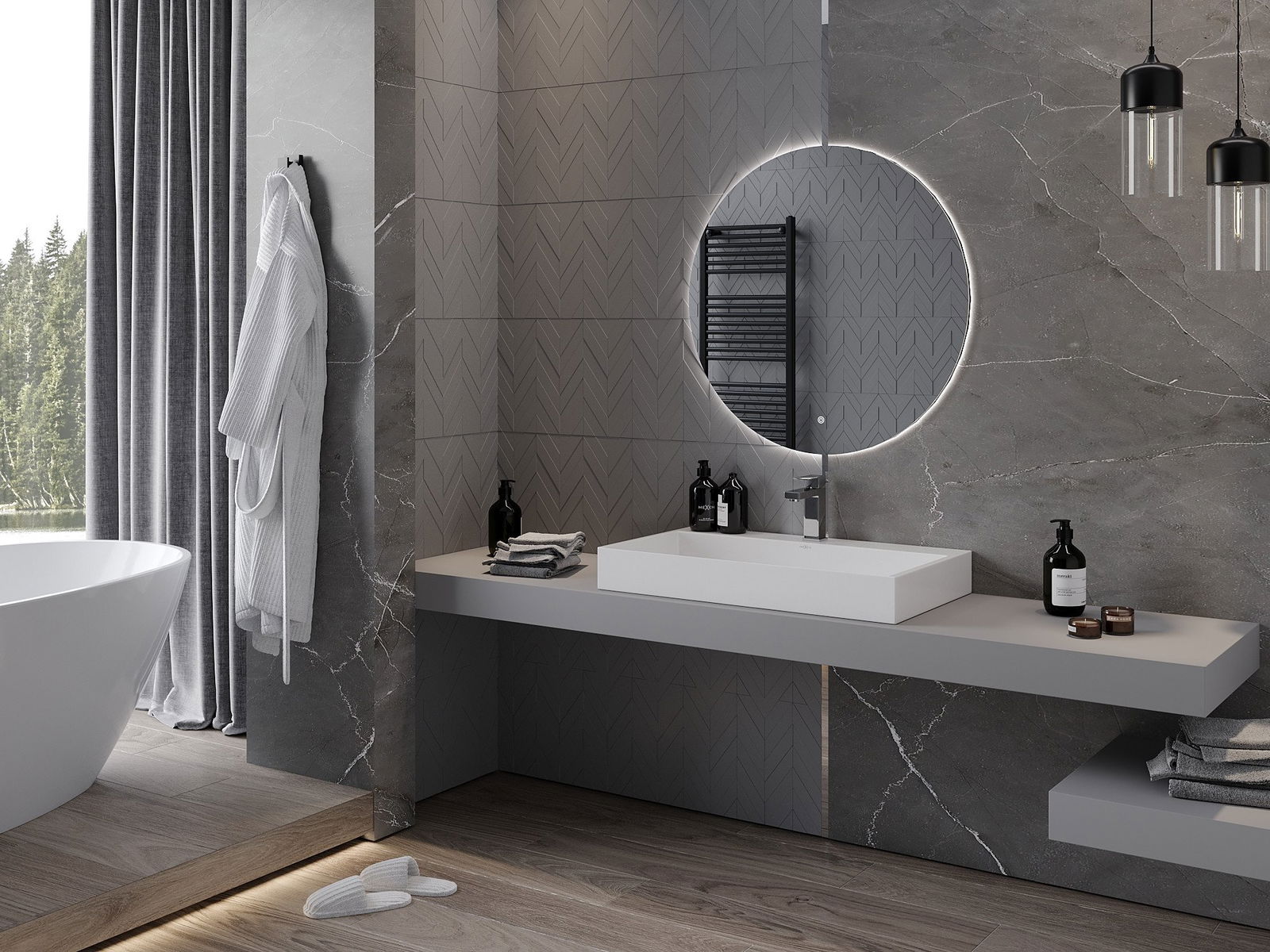 LED foninis apšvietimas prie veidrodžio yra praktinis elementas, palengvinantis kasdienį priežiūrą, dėka idealaus veido apšvietimo galimybės. Foninis apšvietimas suteikia vonios kambariui šiuolaikišką apdailą, pabrėžiant jo elegantišką dekorą.
