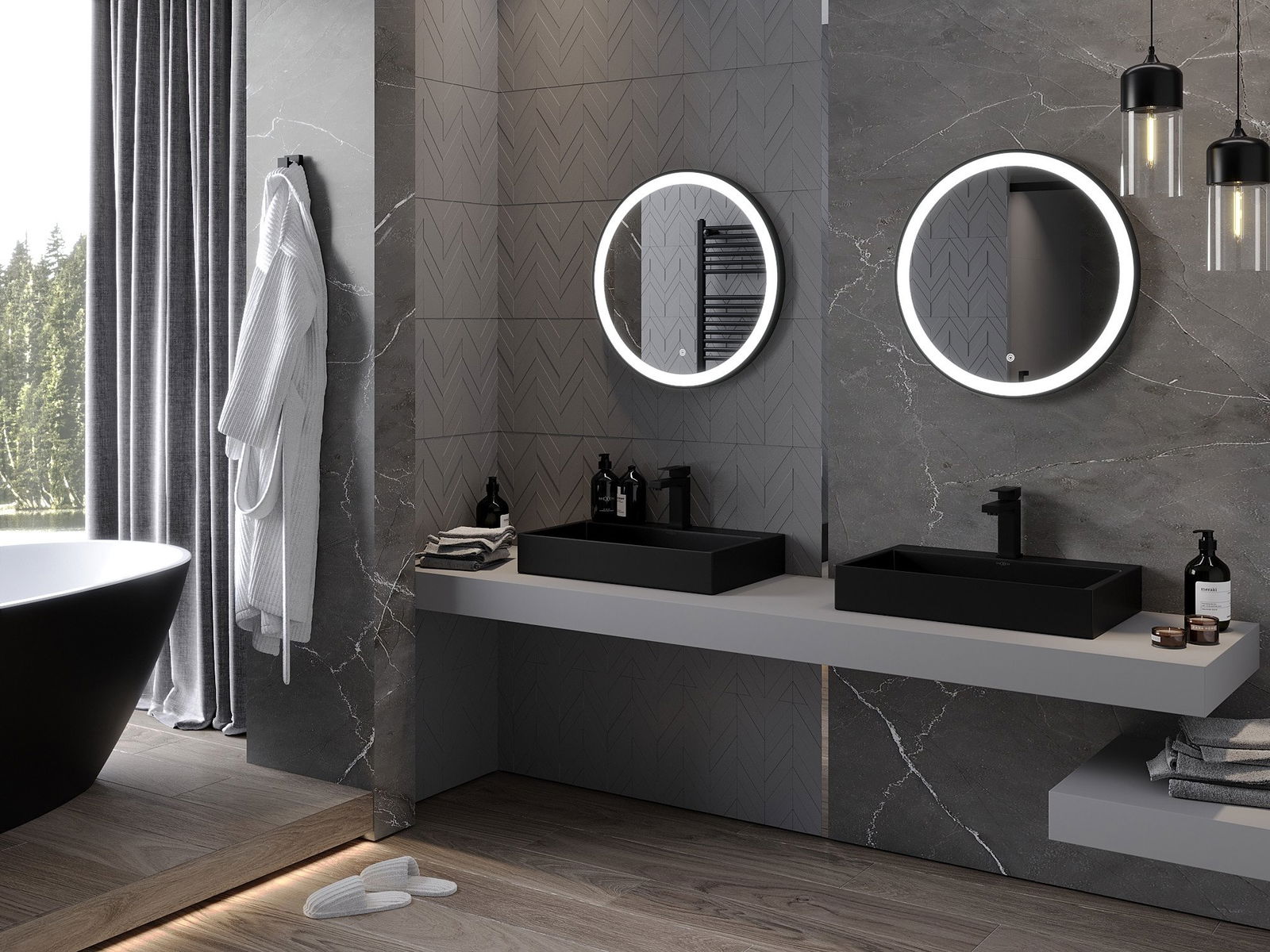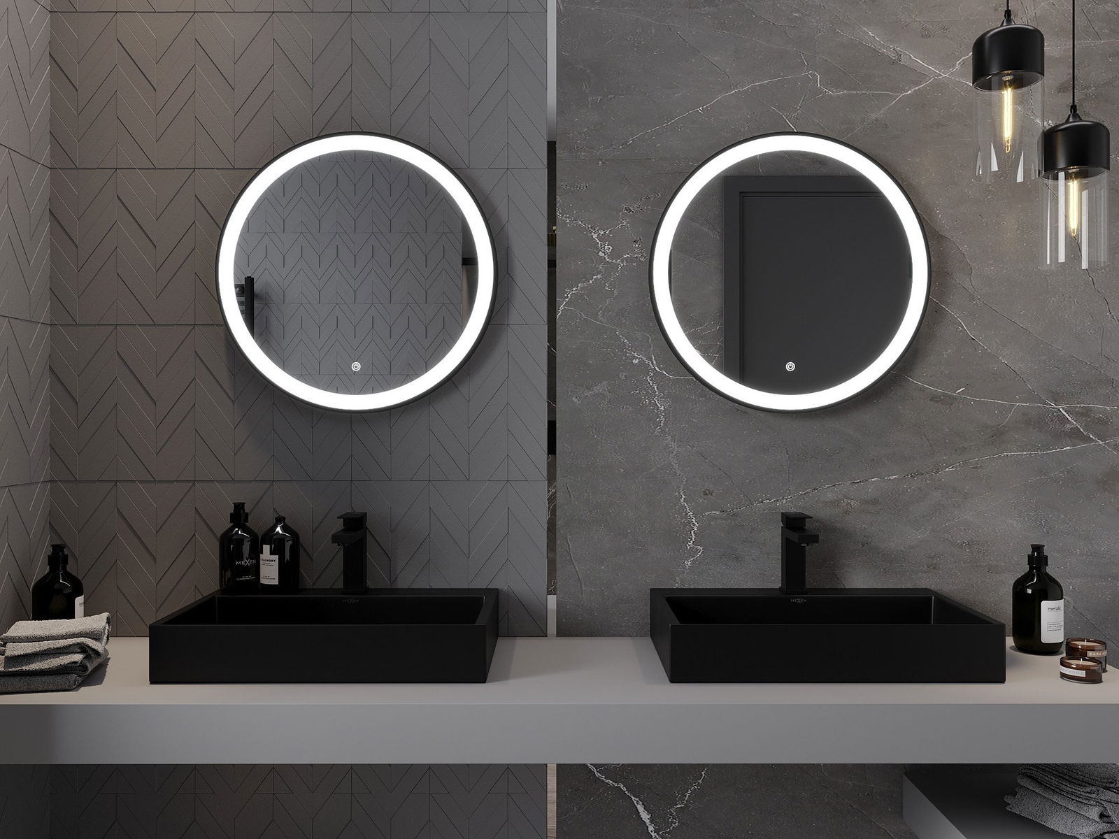 Mexen Esso apšviestas vonios veidrodis, apvalus 60 cm, LED 6000K, antifog, juodas rėmas - 9825-060-060-611-70