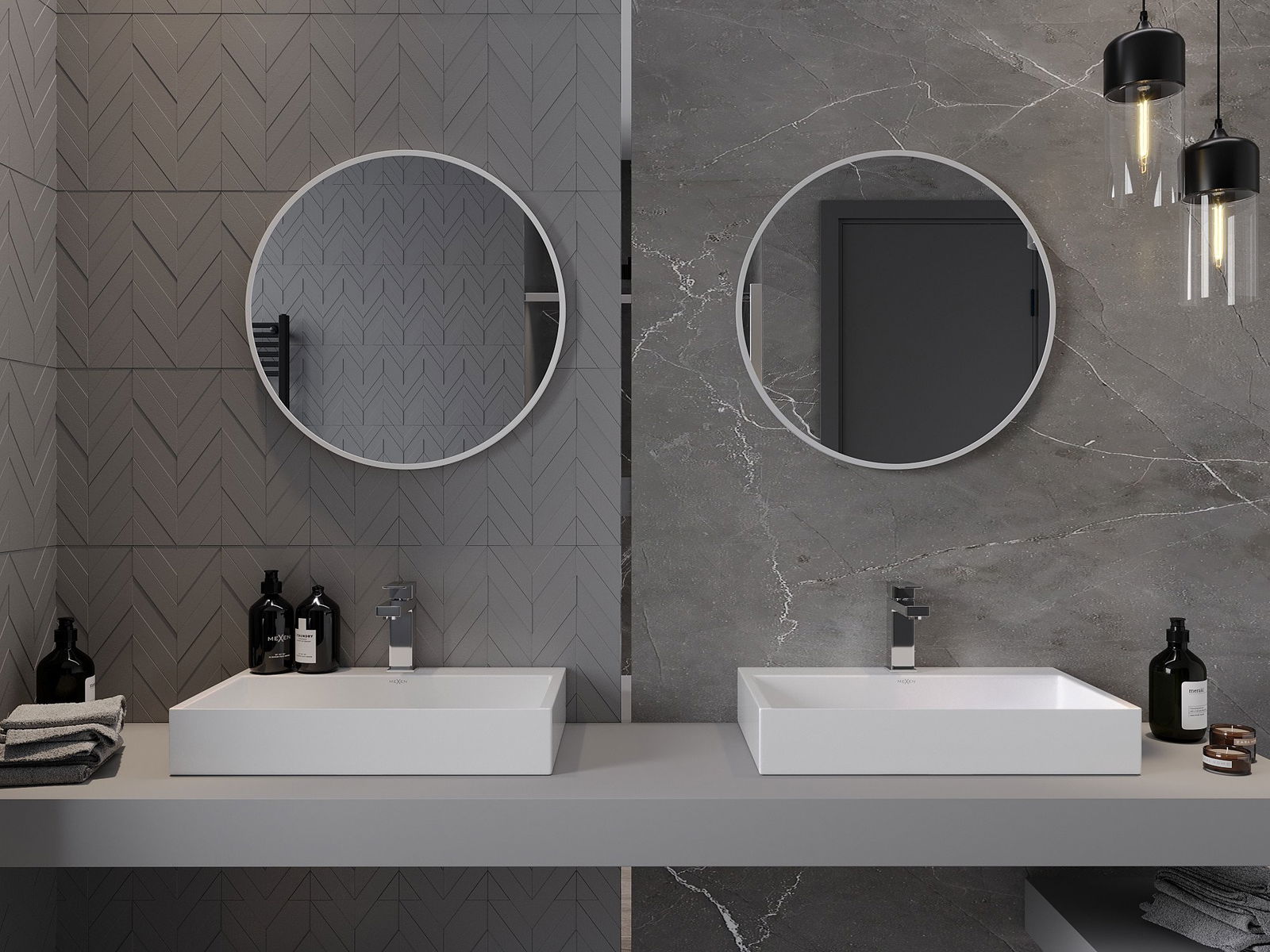Mexen Loft apvalus vonios veidrodis 60 cm, balta rėmelis - 9850-060-060-000-20