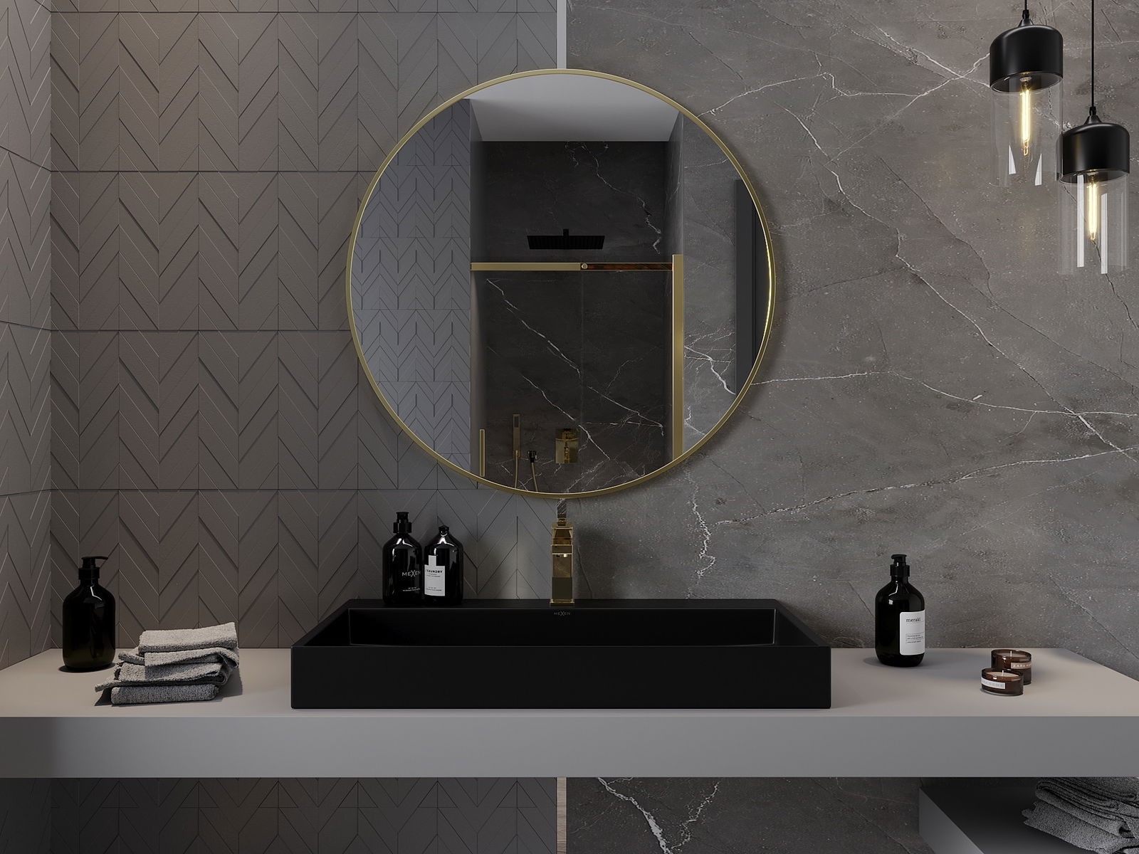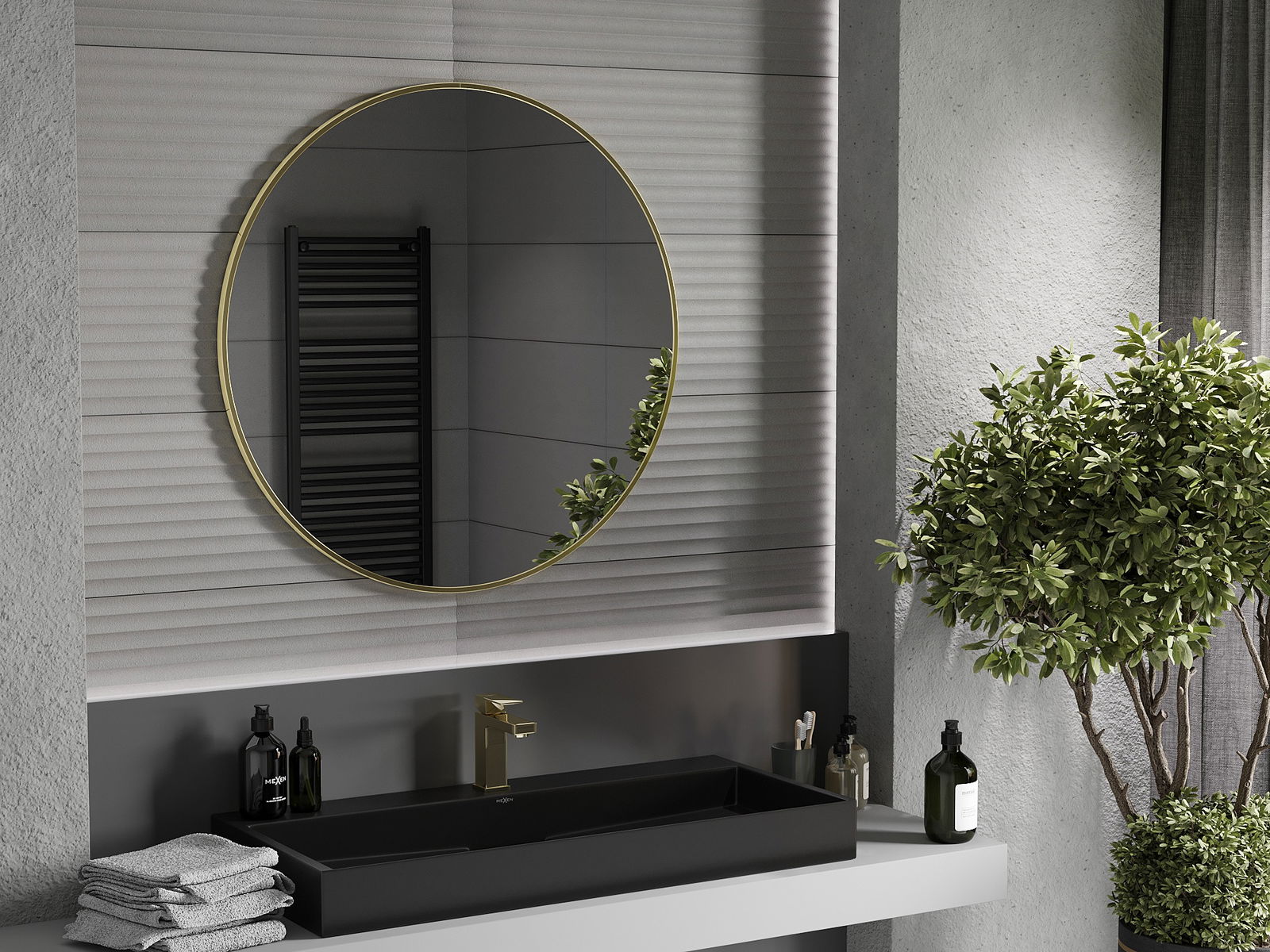 Mexen Loft apvalus vonios kambario veidrodis 95 cm, auksinis rėmas - 9850-095-095-000-50