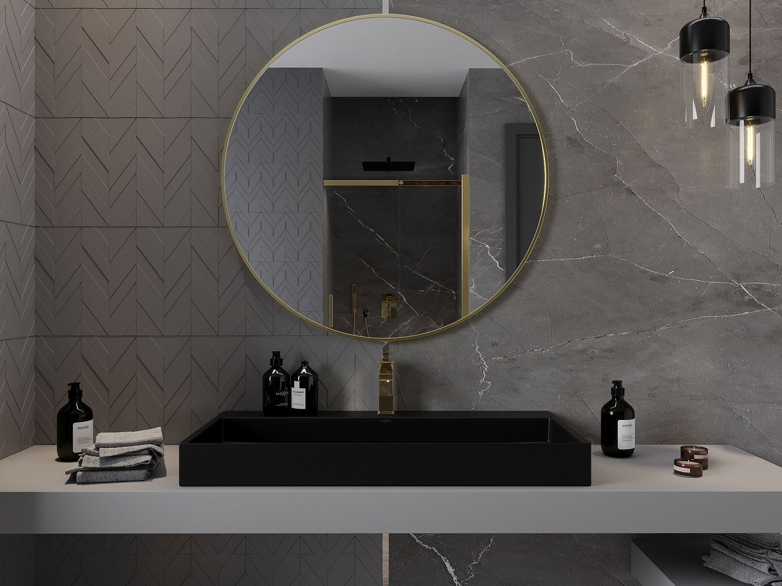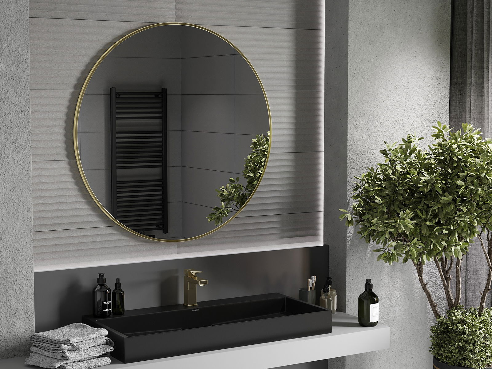 Mexen Loft vonios veidrodis apvalus 100 cm, auksinis rėmas - 9850-100-100-000-50